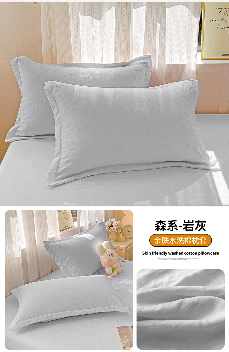 恬澳家纺 2025新款水洗棉森系枕套 森系-岩灰