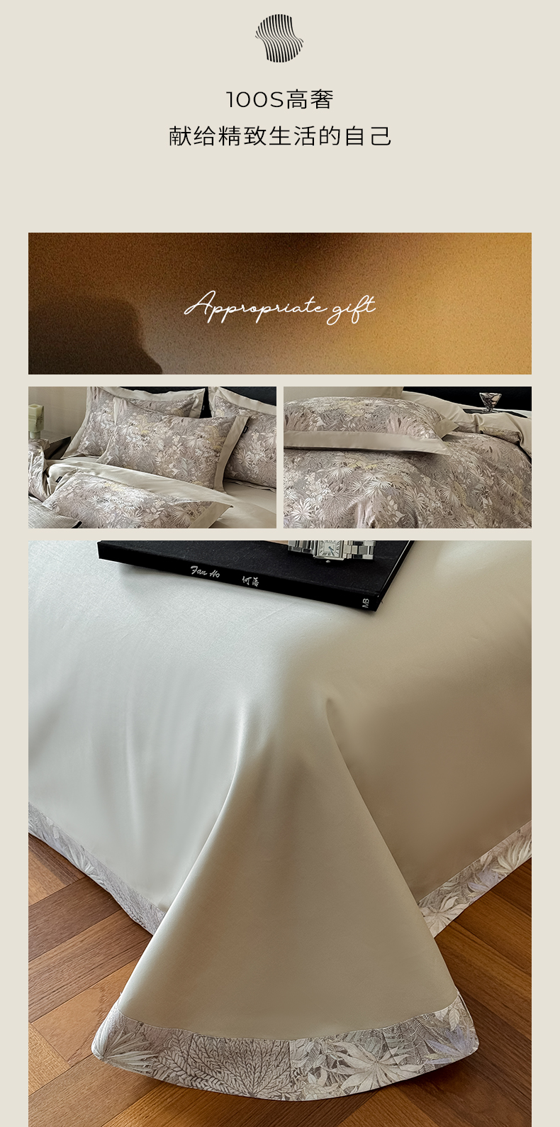 商品名称:禾时2025春夏新款全棉纯棉100S长绒棉数码印花四件套带精致礼盒包装 绮丽山河