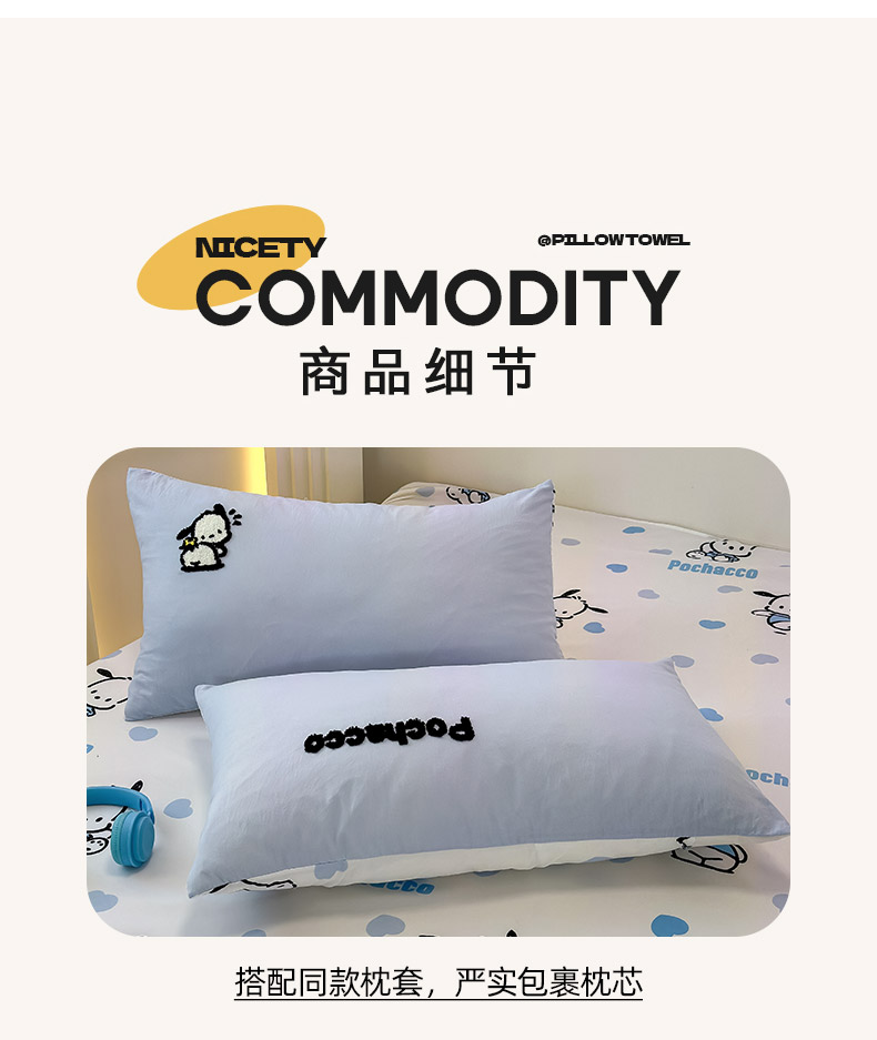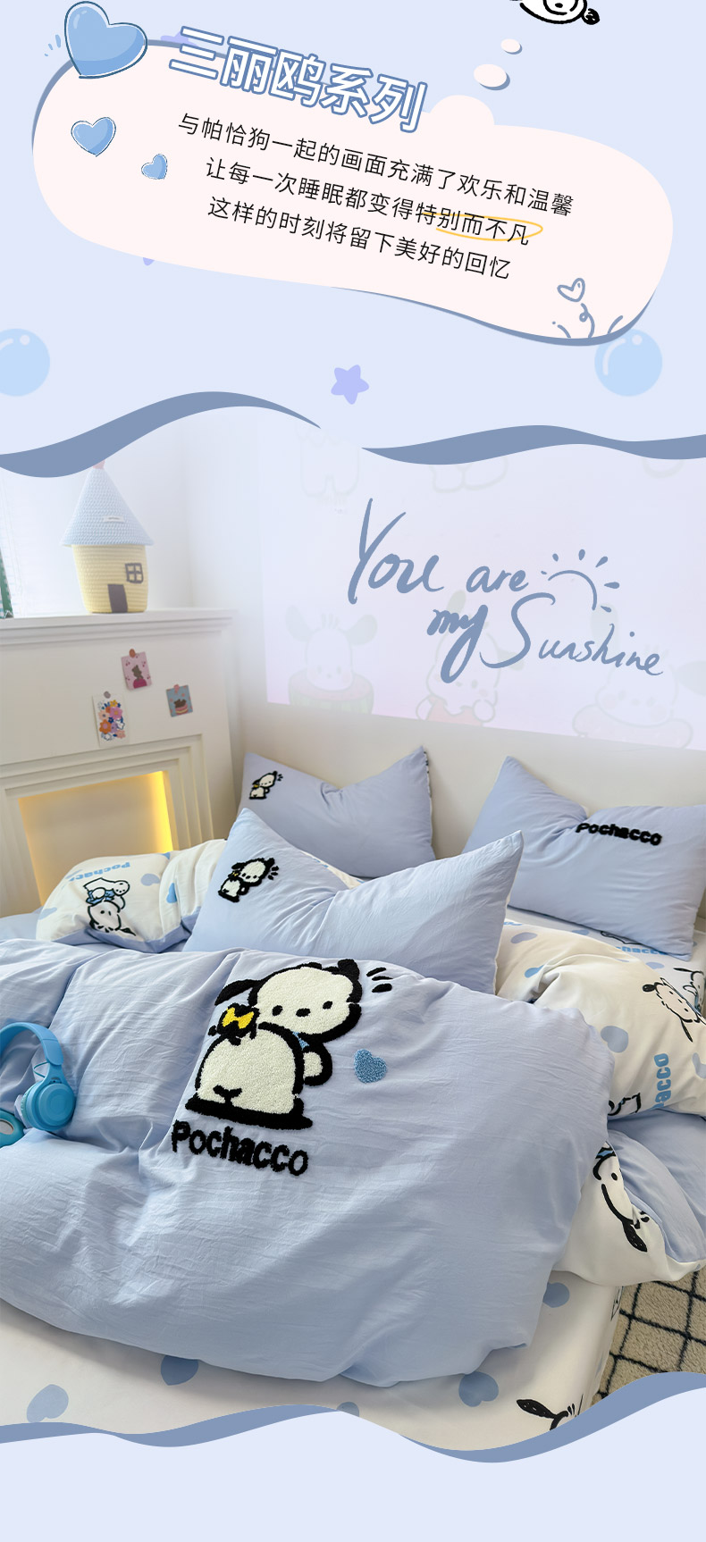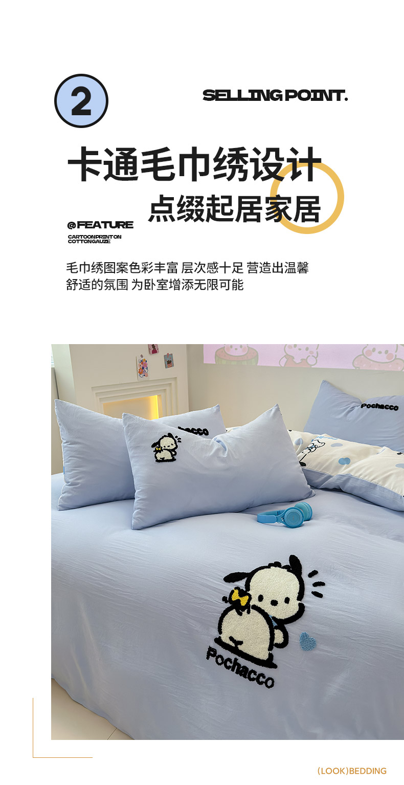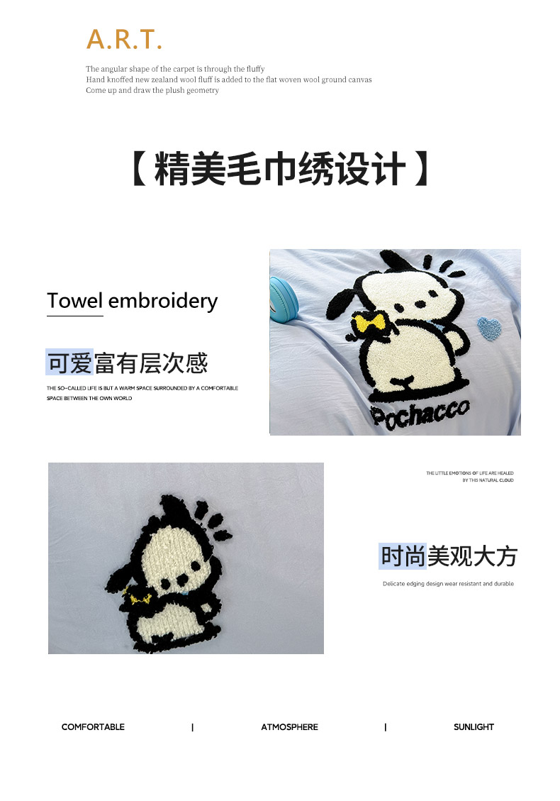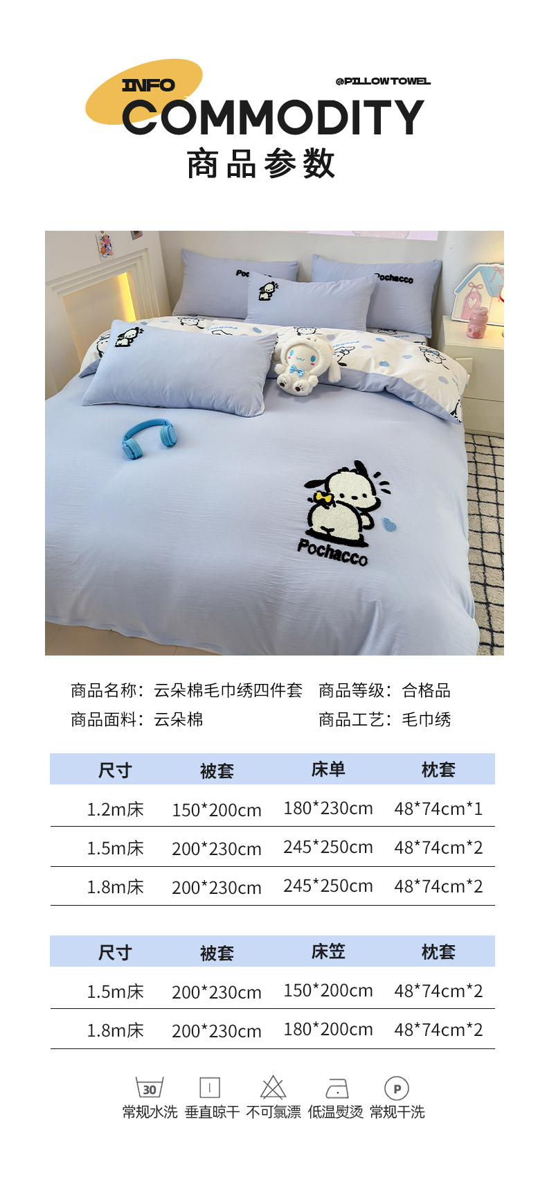 商品名称:乐坊 2025新款三丽鸥系列云朵棉毛巾绣四件套 帕恰狗蓝