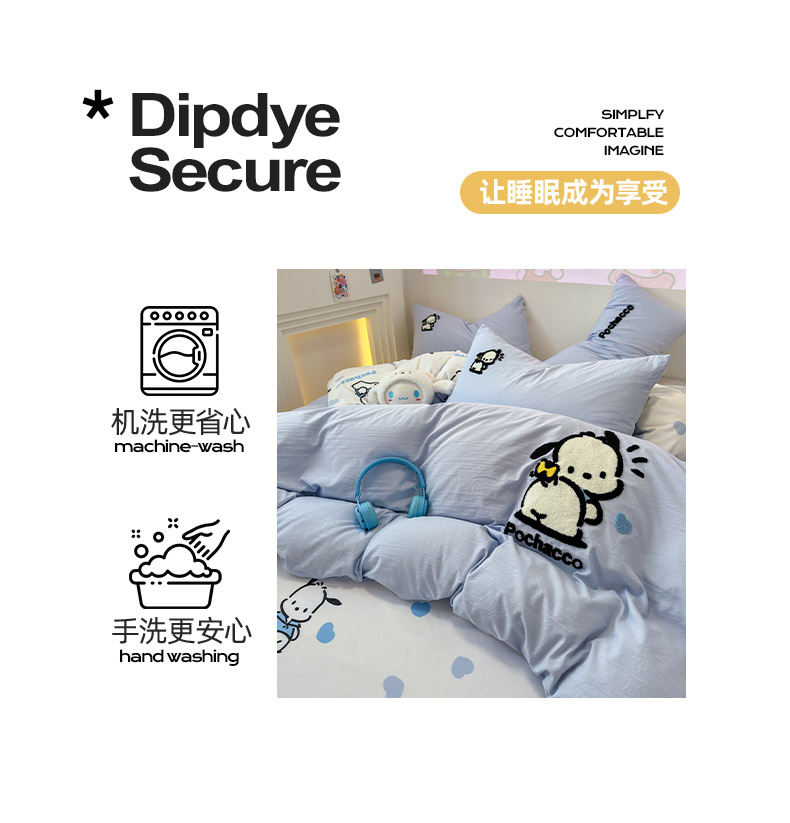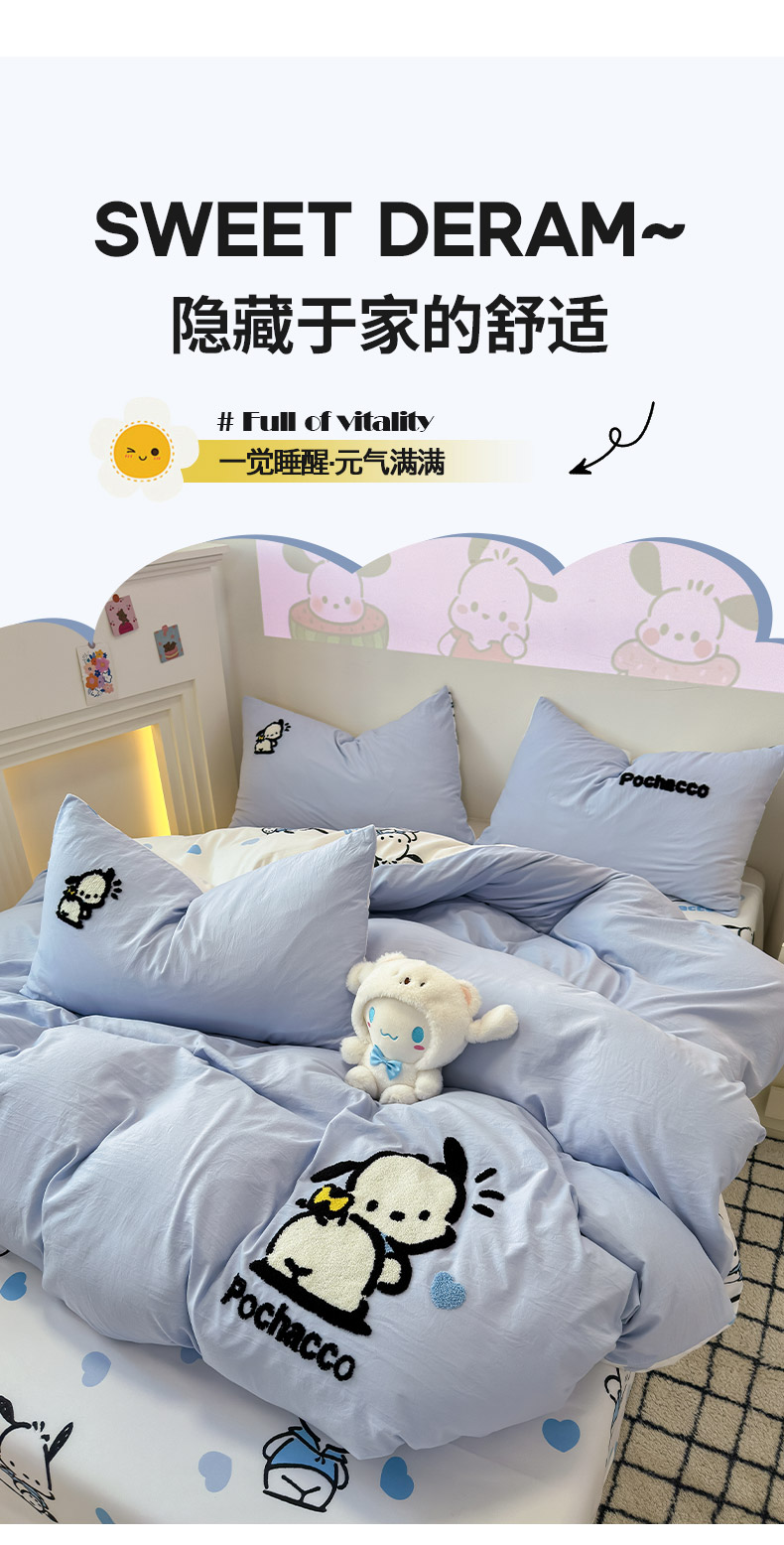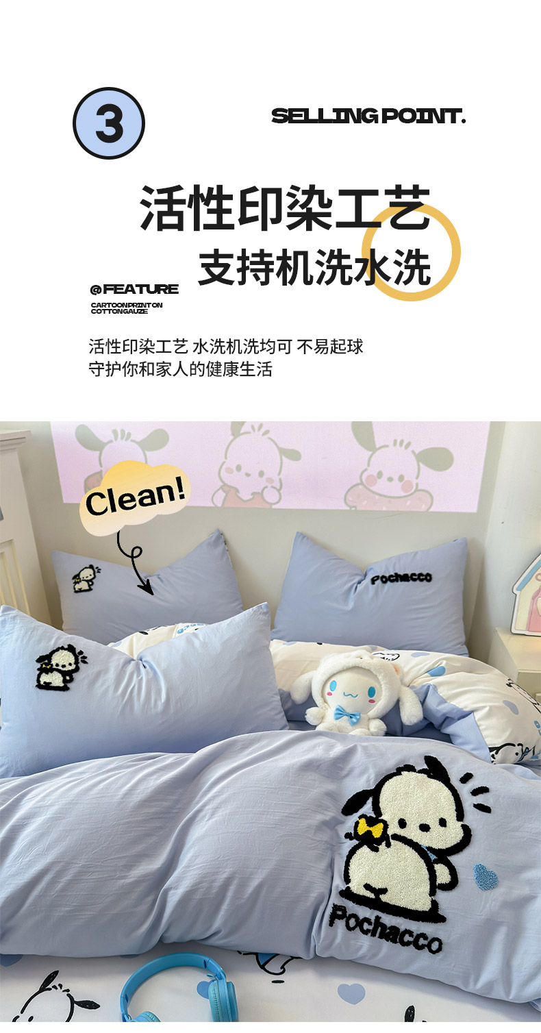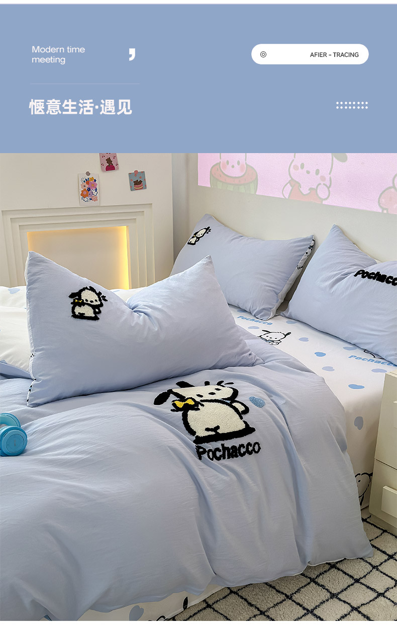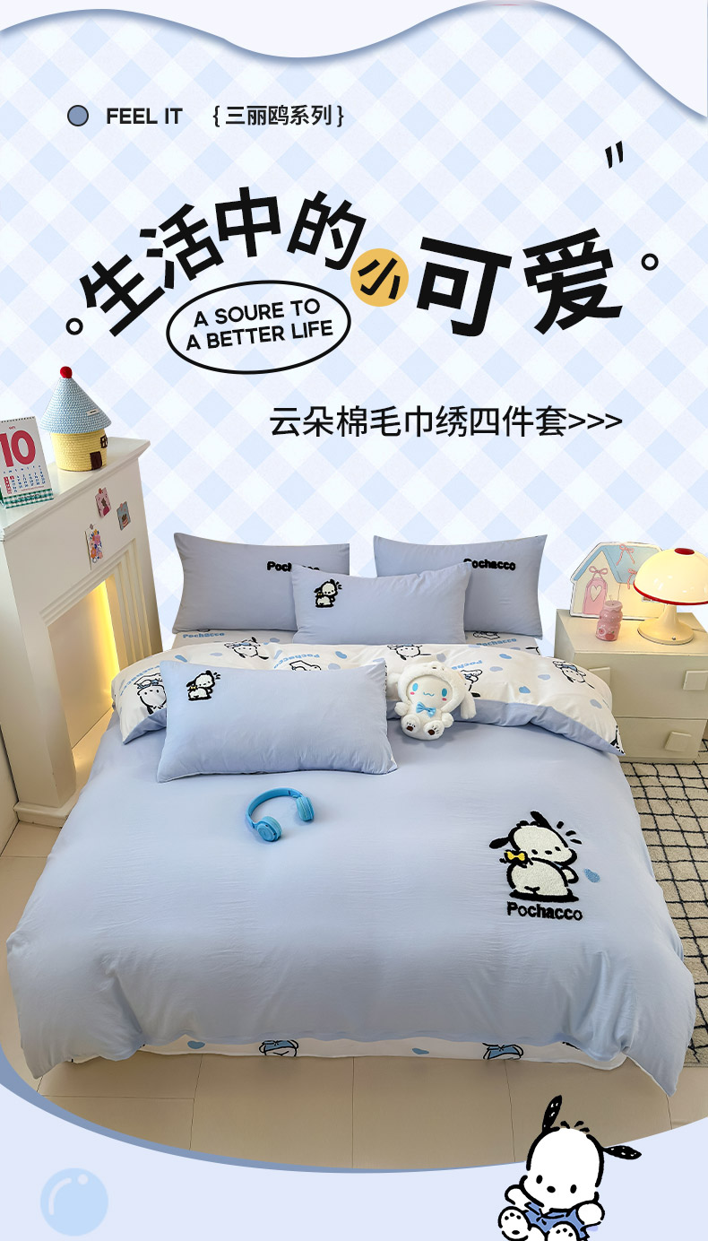 商品名称:乐坊 2025新款三丽鸥系列云朵棉毛巾绣四件套 帕恰狗蓝