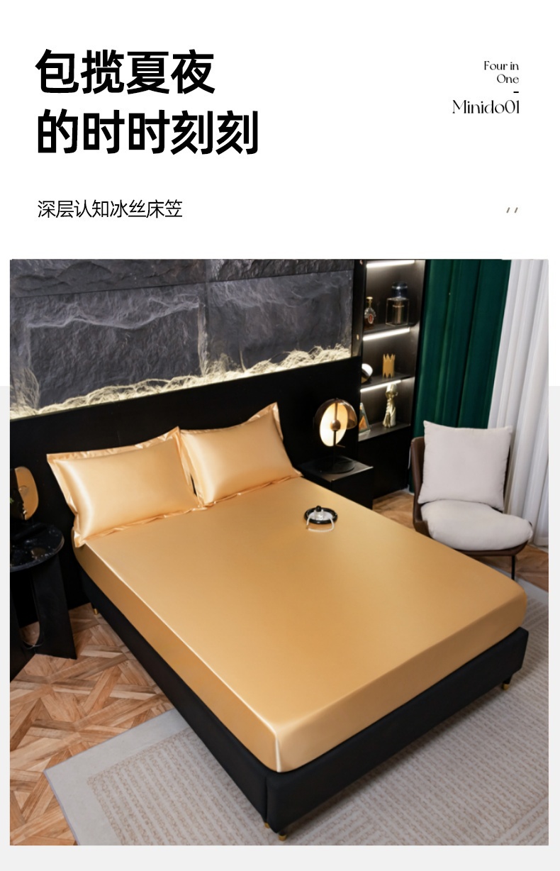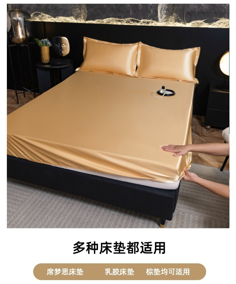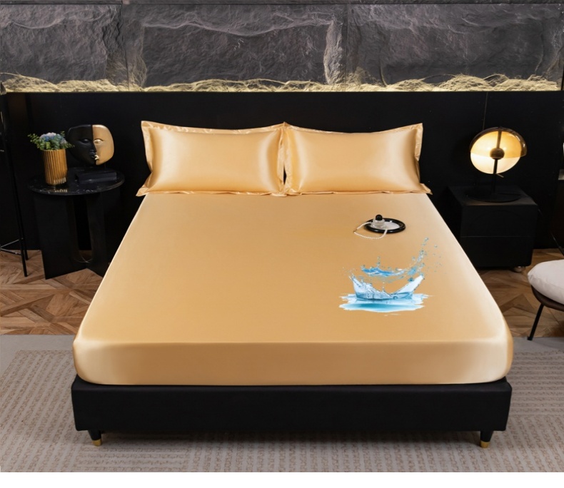 • 91家纺网 家纺一手货源 找家纺 圣比熊2025新款防水冰丝纯色床笠凉爽柔顺床垫保护罩 防水款-金驼色
