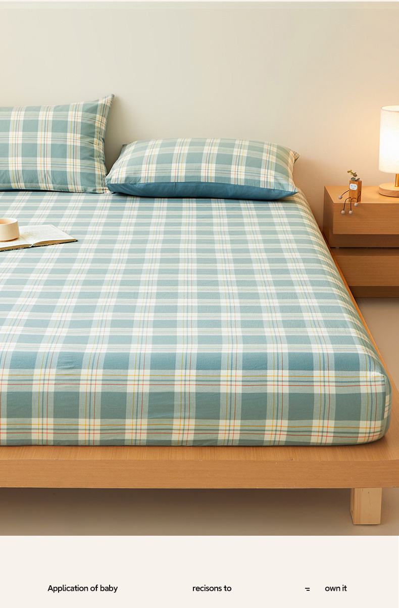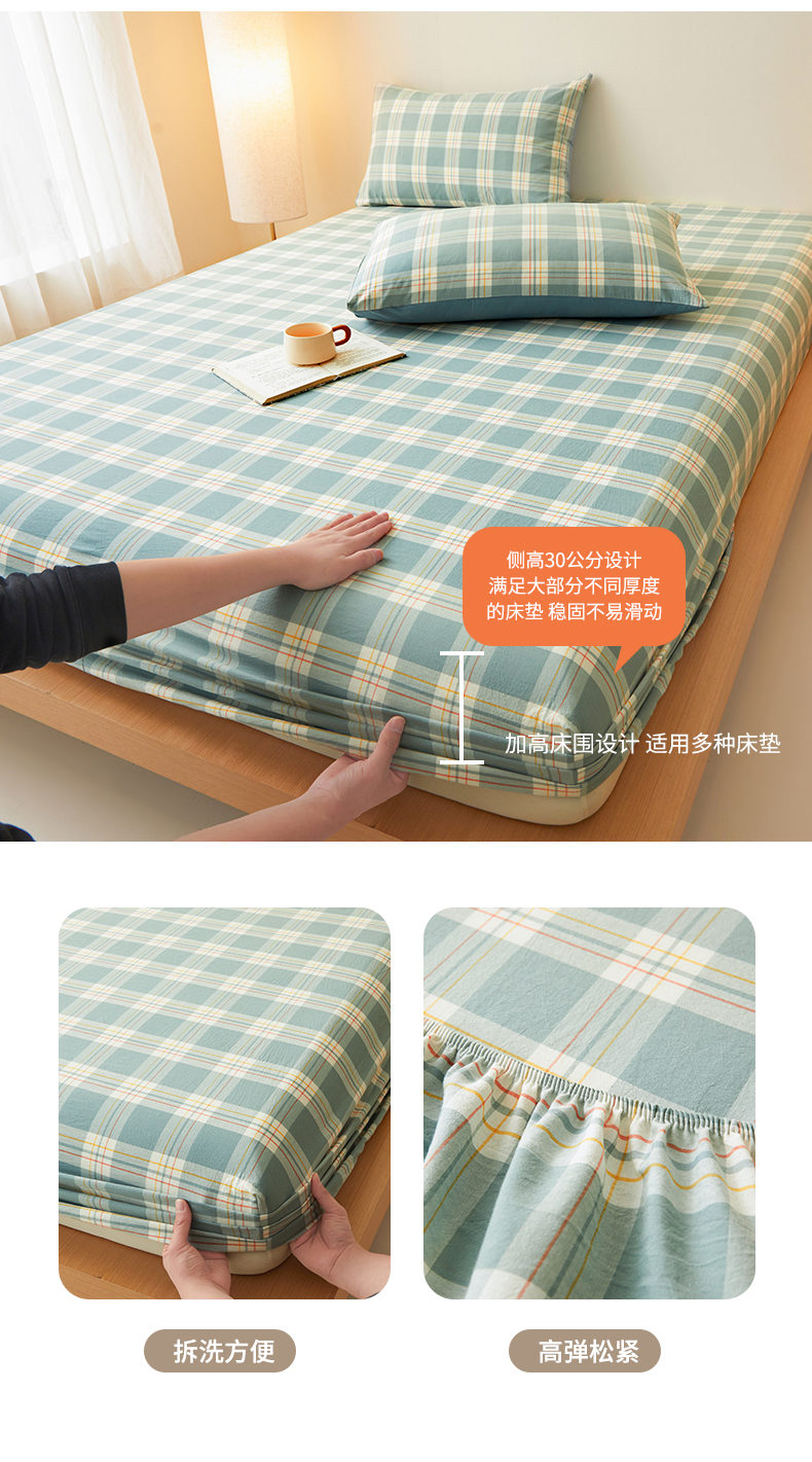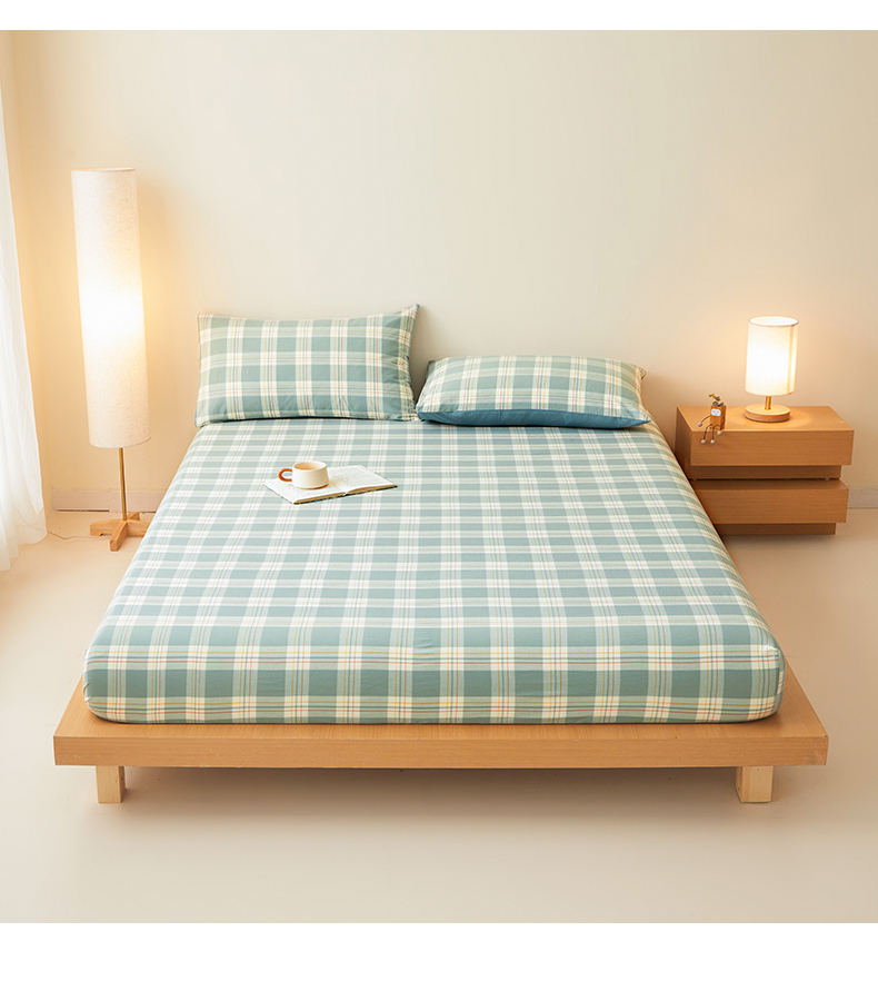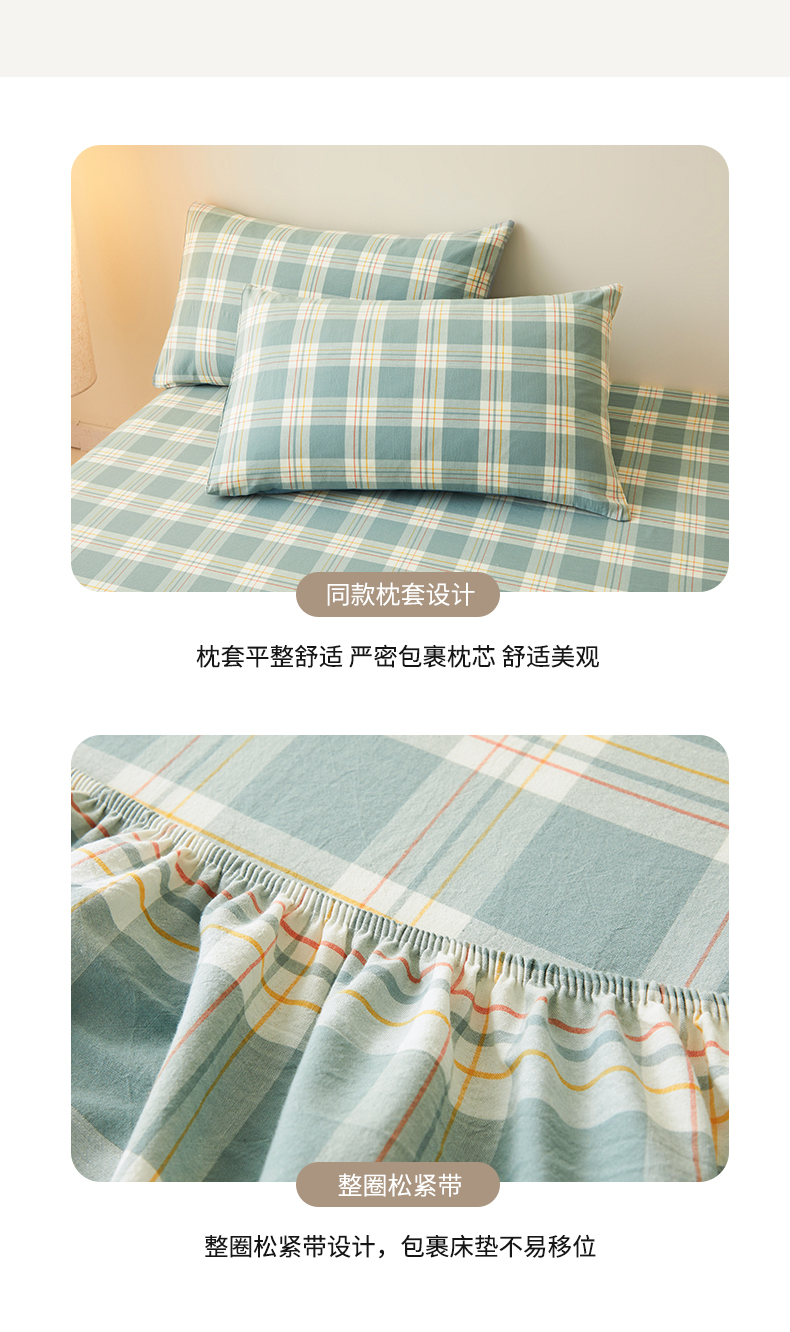 • 91家纺网 家纺一手货源 找家纺 曼陀罗 2025新款无印风格子床笠 韵绿