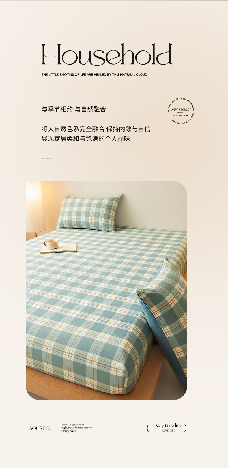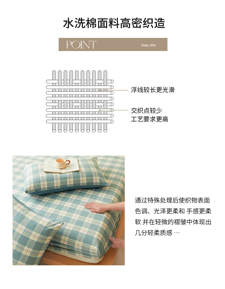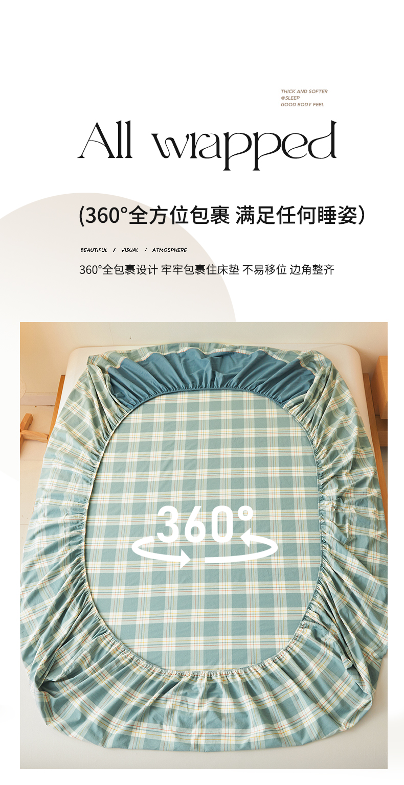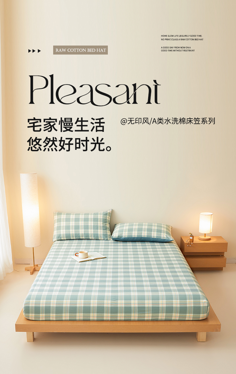 • 91家纺网 家纺一手货源 找家纺 曼陀罗 2025新款无印风格子床笠 韵绿