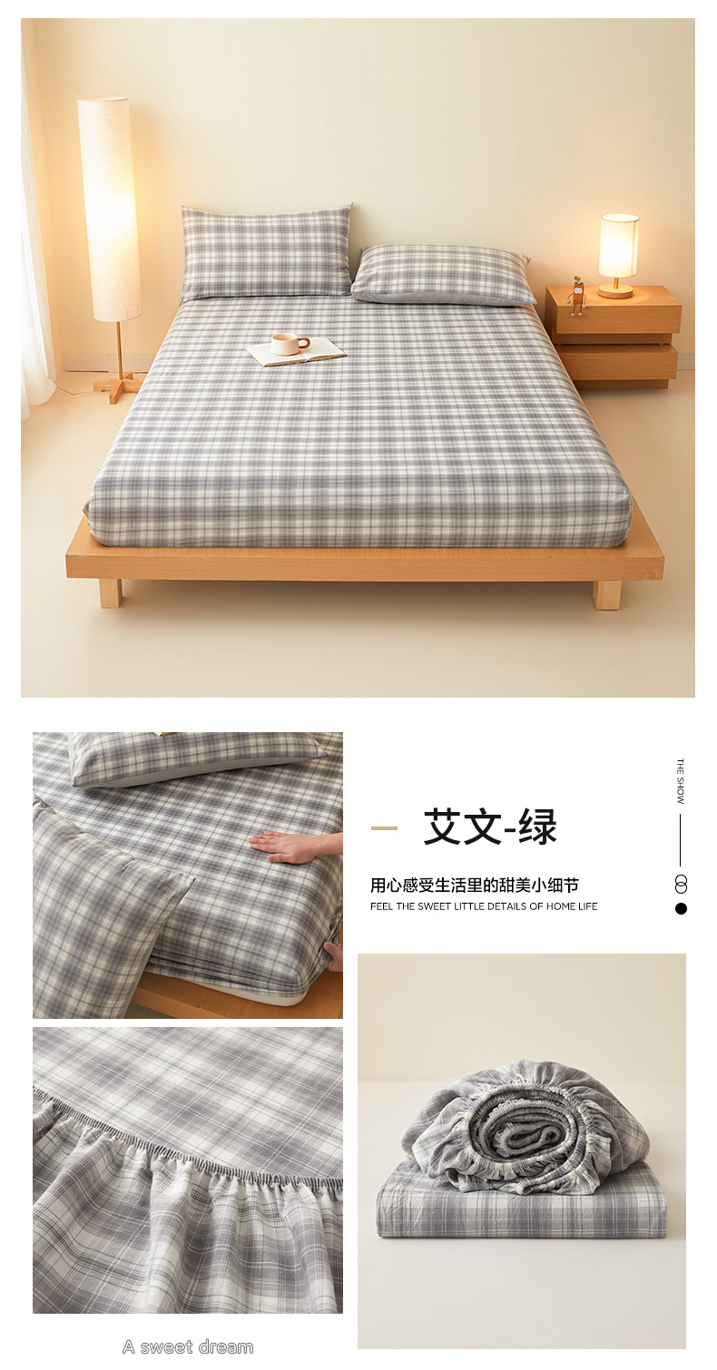 曼陀罗 2025新款无印风格子床笠 韵绿