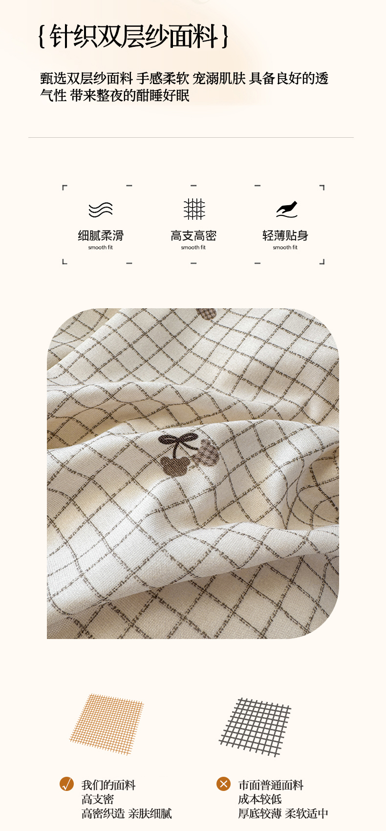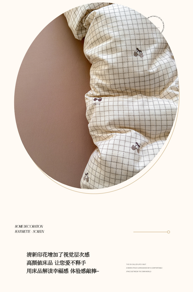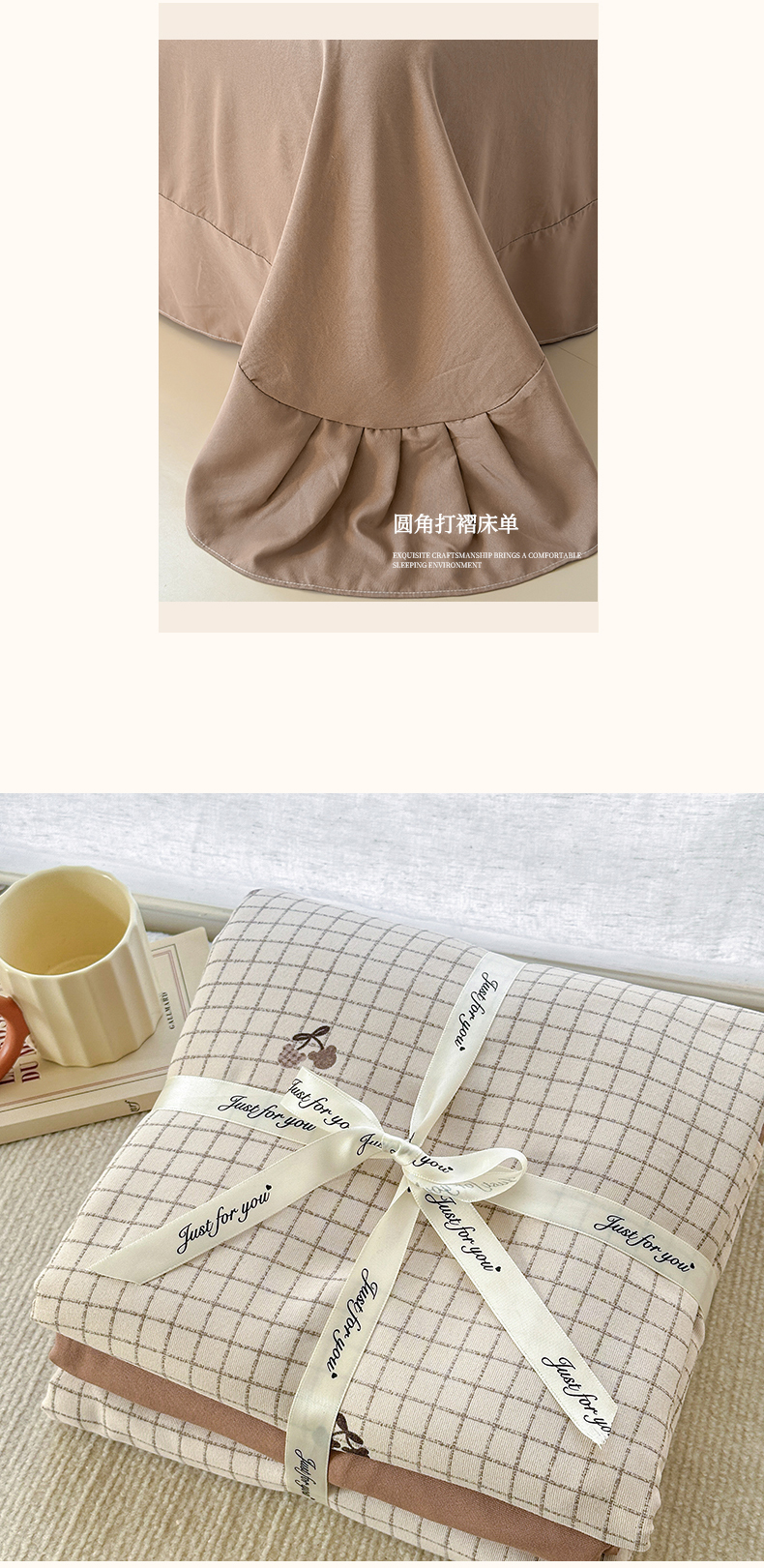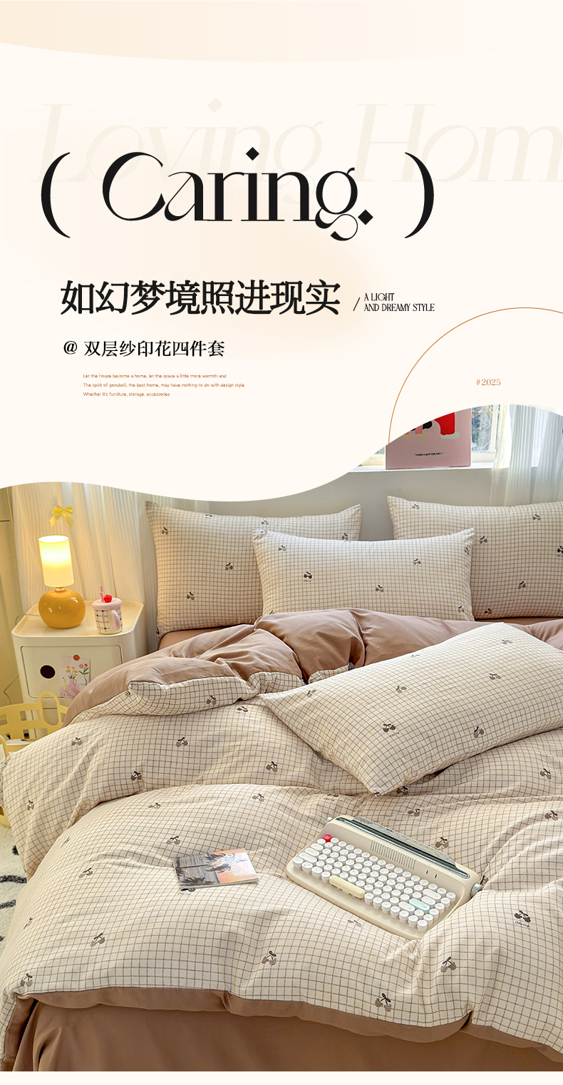 席佬大 2025新款柔软针织棉双层纱印花四件套 樱桃咖