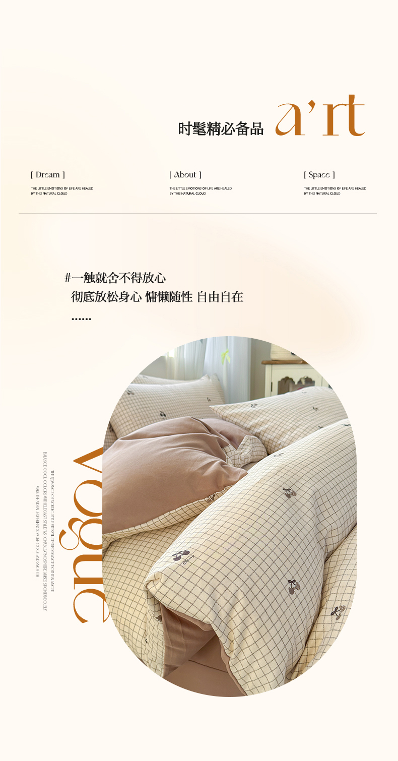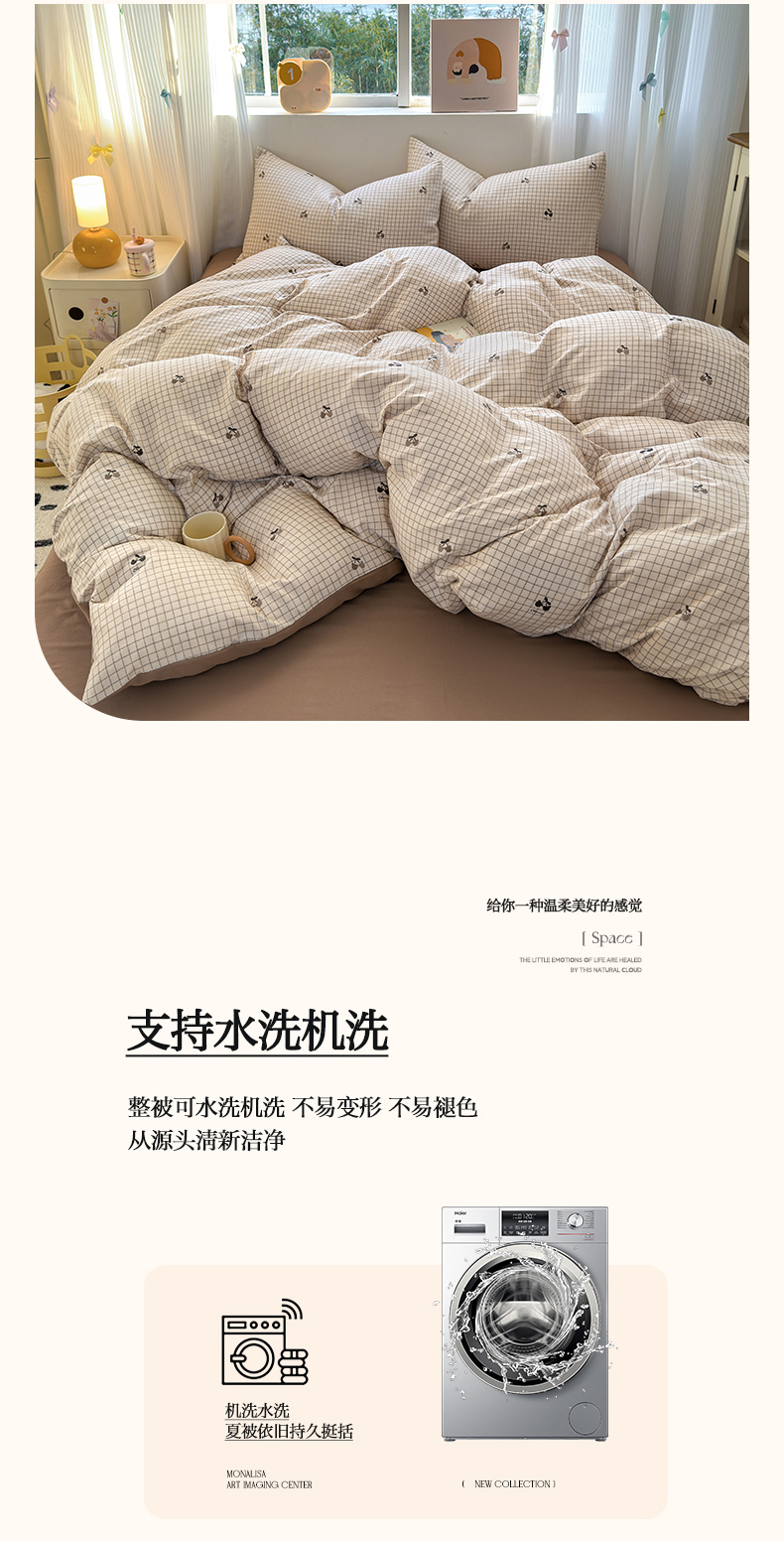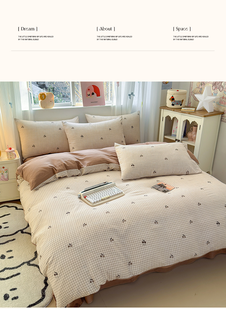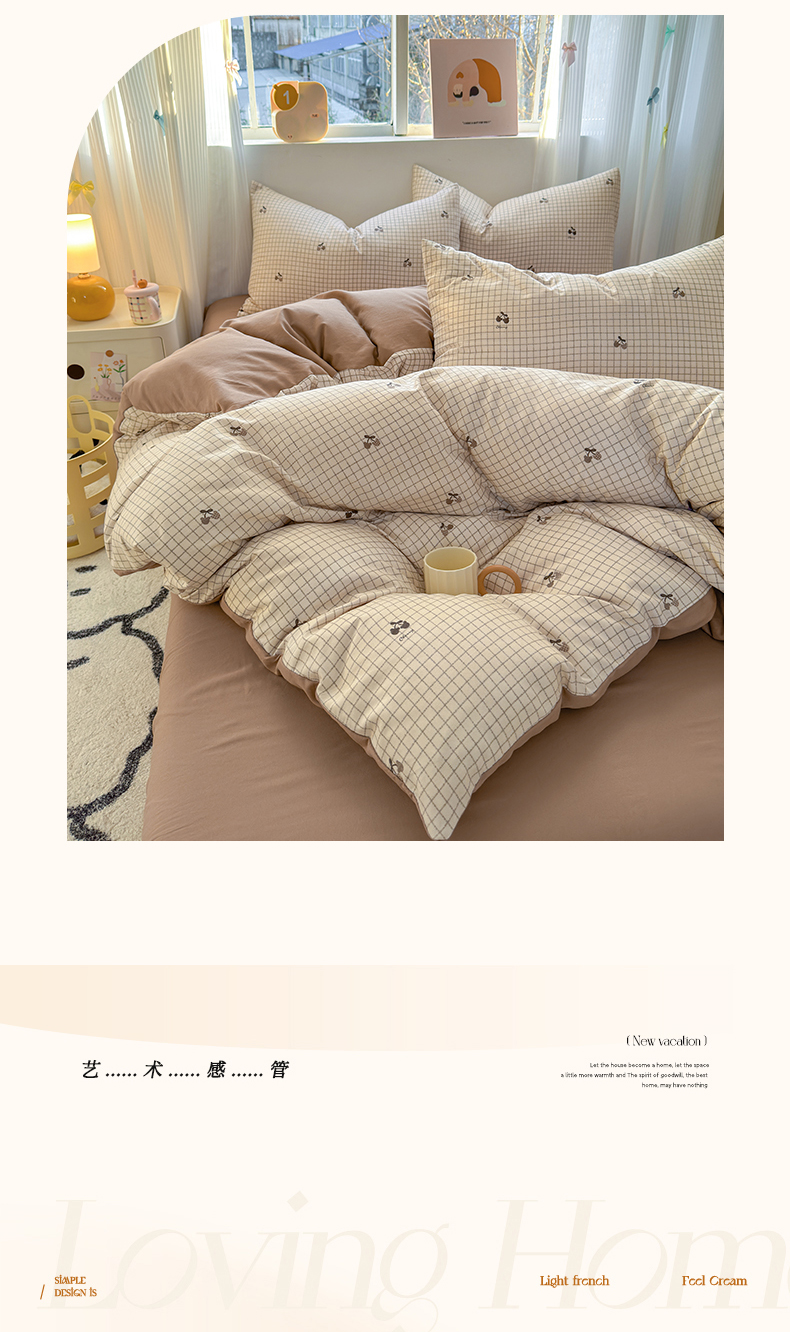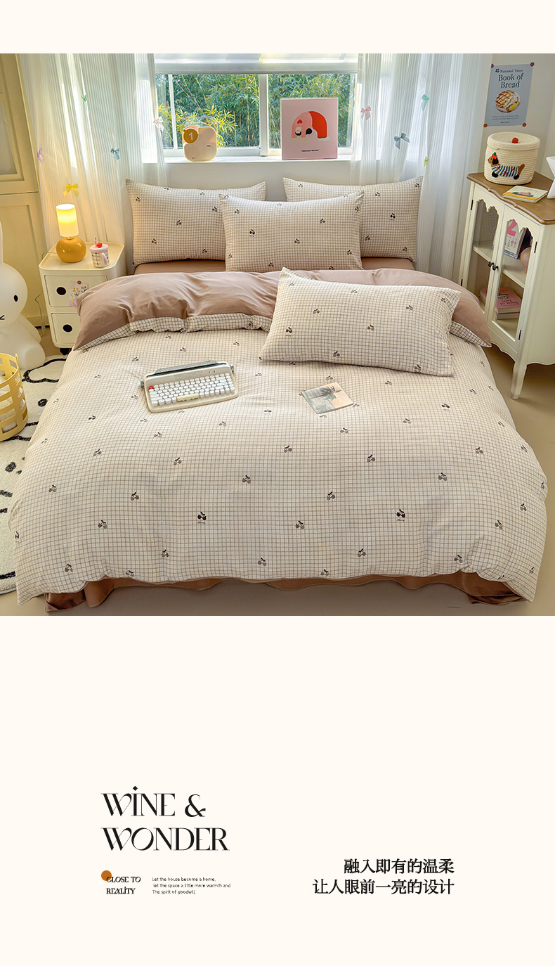席佬大 2025新款柔软针织棉双层纱印花四件套 樱桃咖
