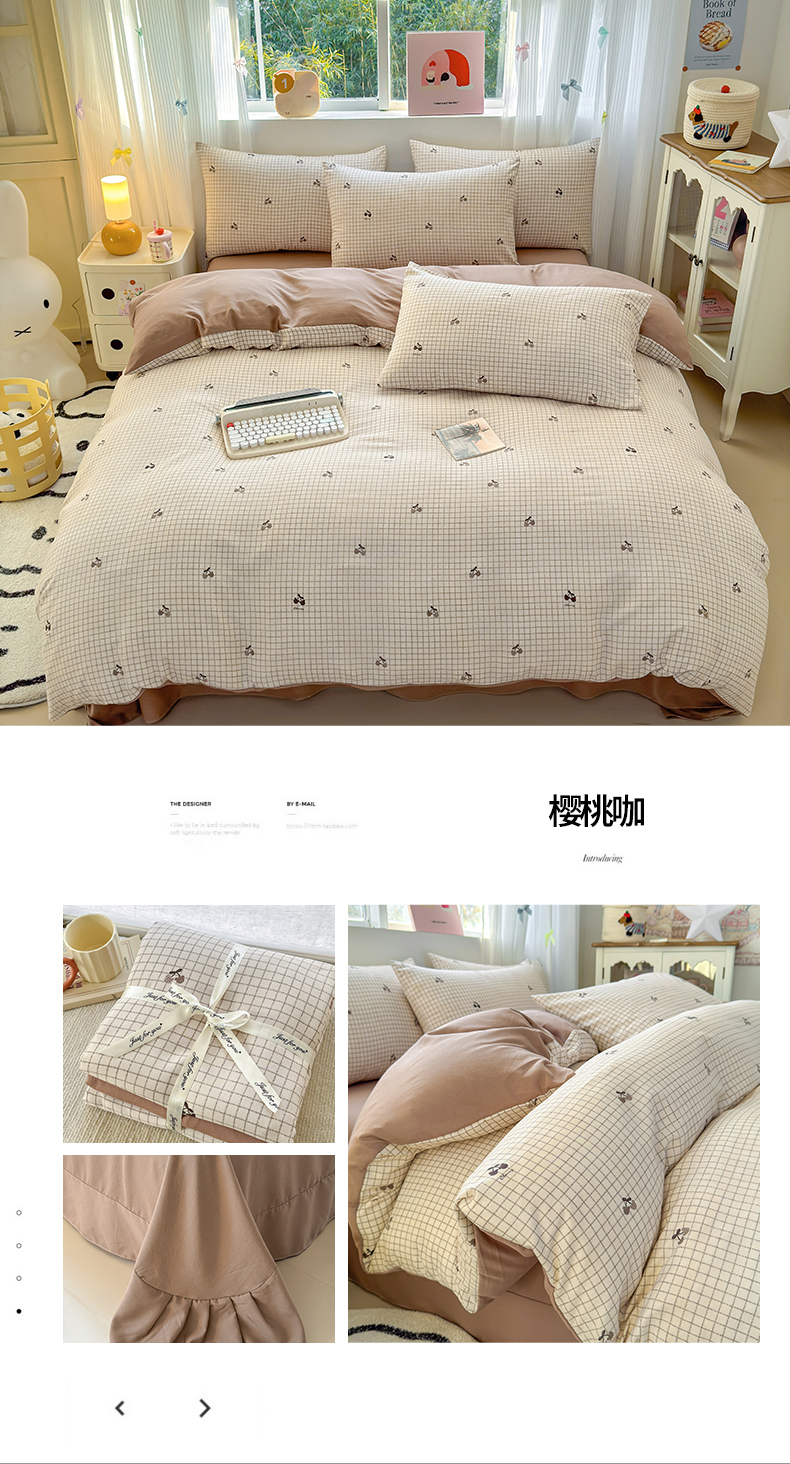 商品名称:席佬大 2025新款柔软针织棉双层纱印花四件套 樱桃咖