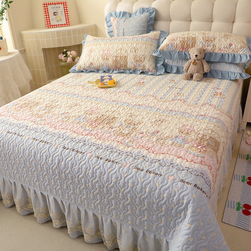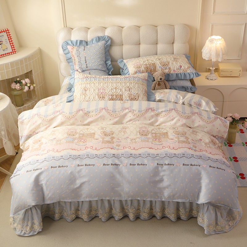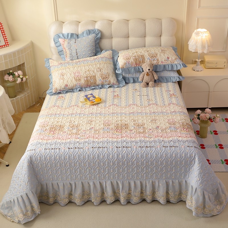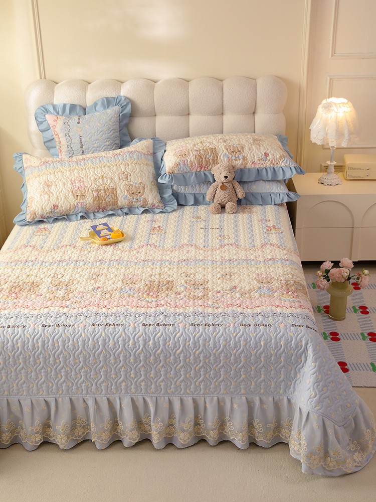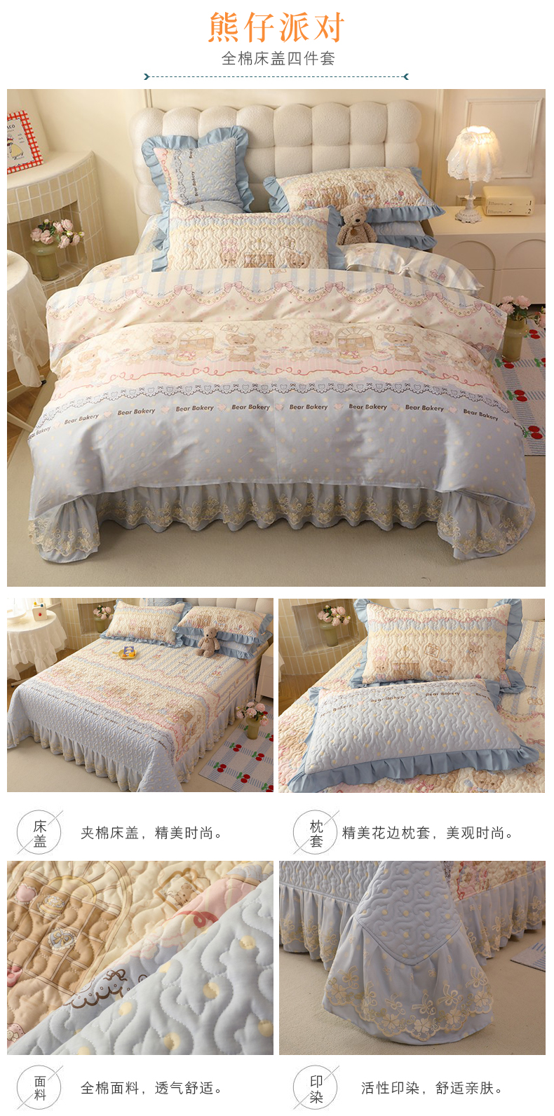 当前位置: 91家纺网 > 商品网购 > 床品套件 > 四件套 > 其它四件套 > 美达家纺2025新款全棉蕾丝边单床盖四件套 熊仔派对