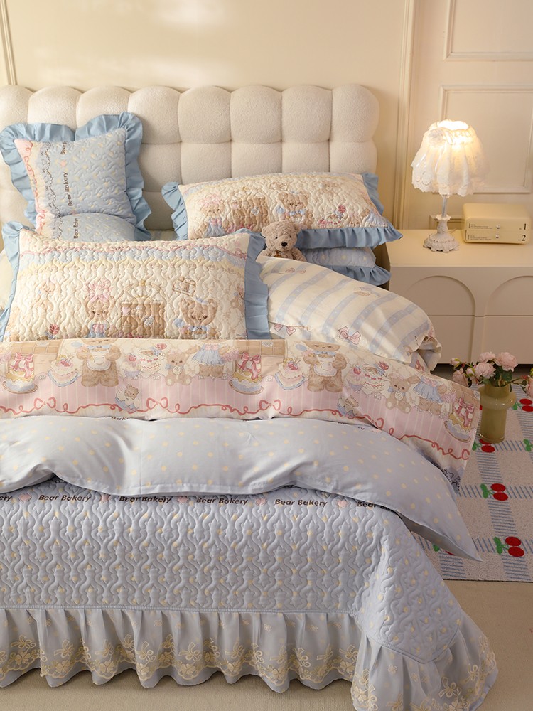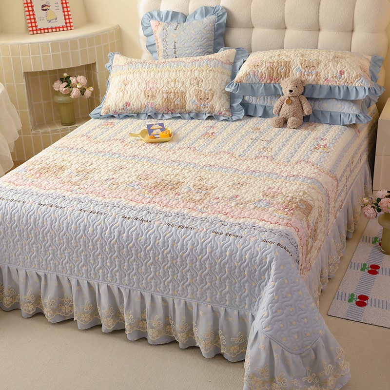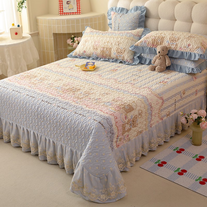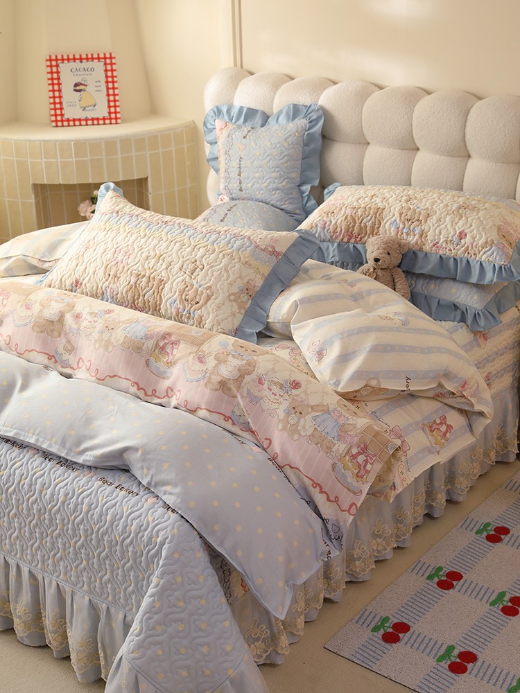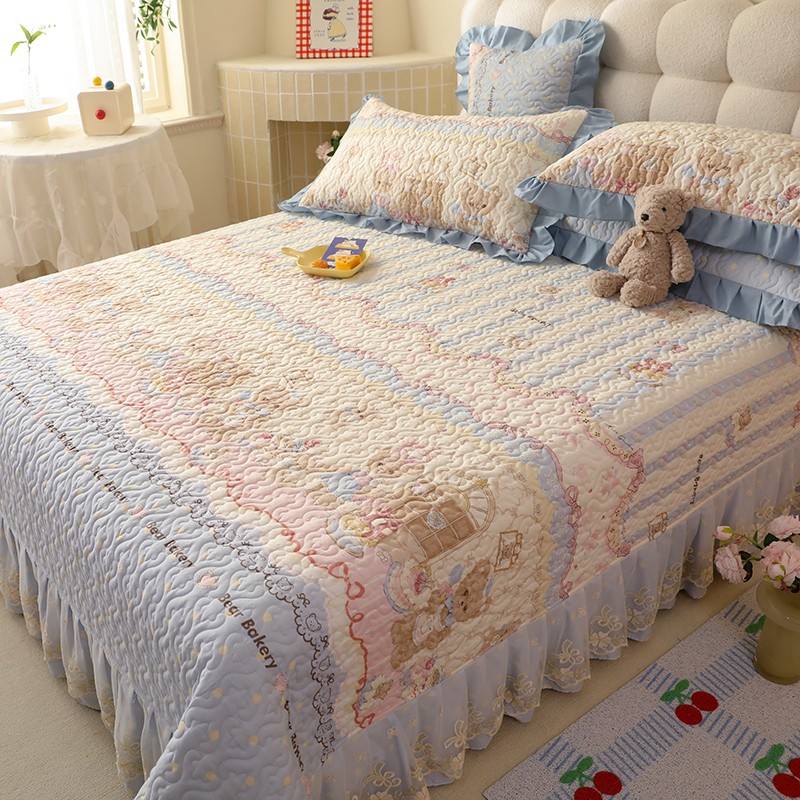 当前位置: 91家纺网 > 商品网购 > 床品套件 > 四件套 > 其它四件套 > 美达家纺2025新款全棉蕾丝边单床盖四件套 熊仔派对