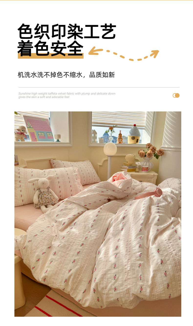 (总)琪格格纺织 2025新款全棉纯棉13372小清新四件套,爱心兔,白兔与熊,彩霞,美郁-紫,萌心兔,皮皮兔,苏珊花园,微雨,小粉兔,熊猫