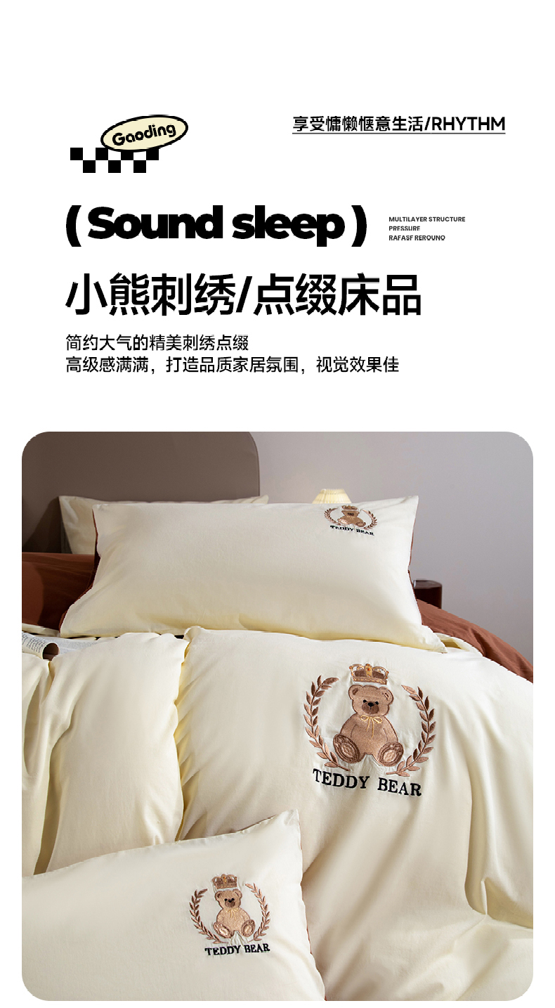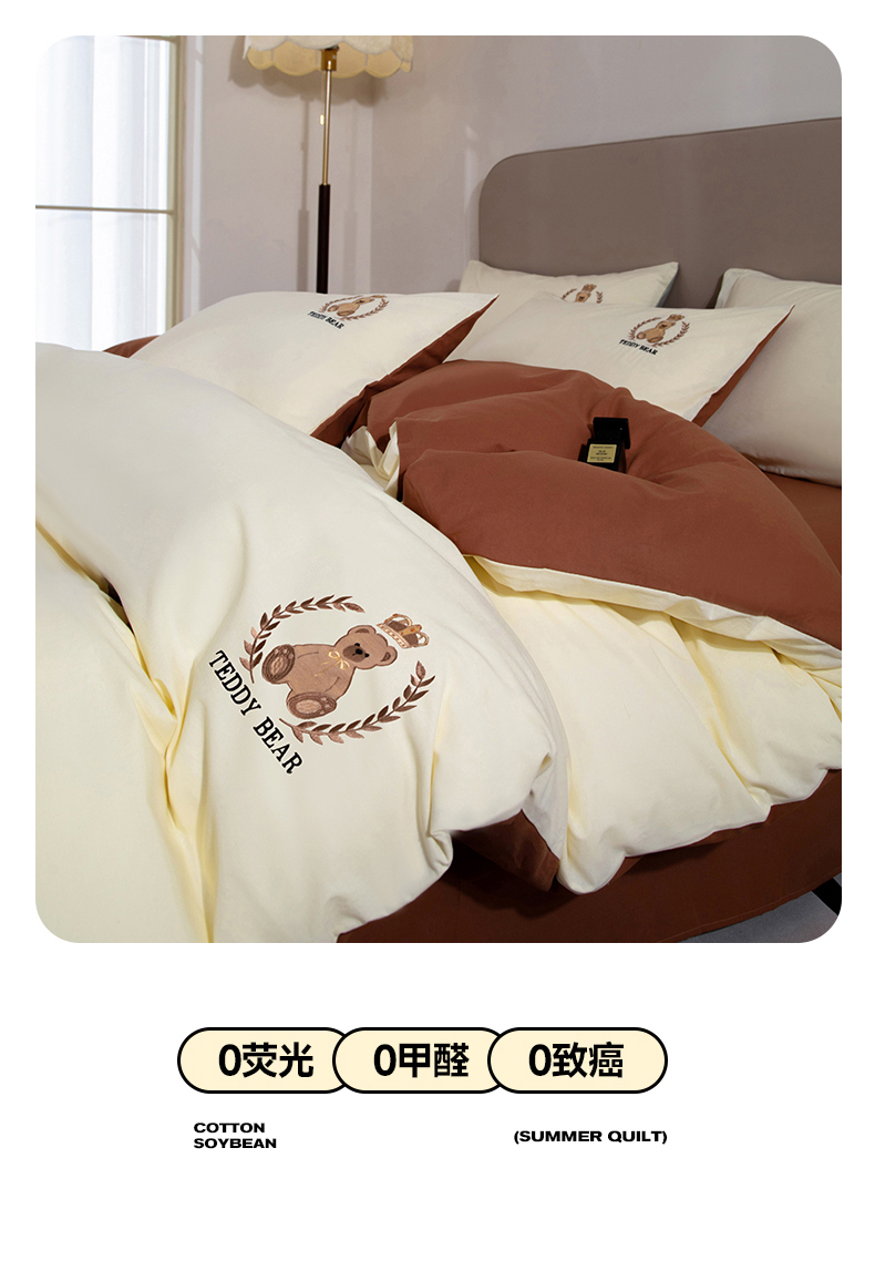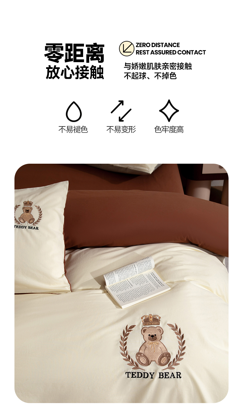 澳梵家居2025新款A类全棉水洗棉刺绣四件套-泰迪小熊 泰迪熊-白巧