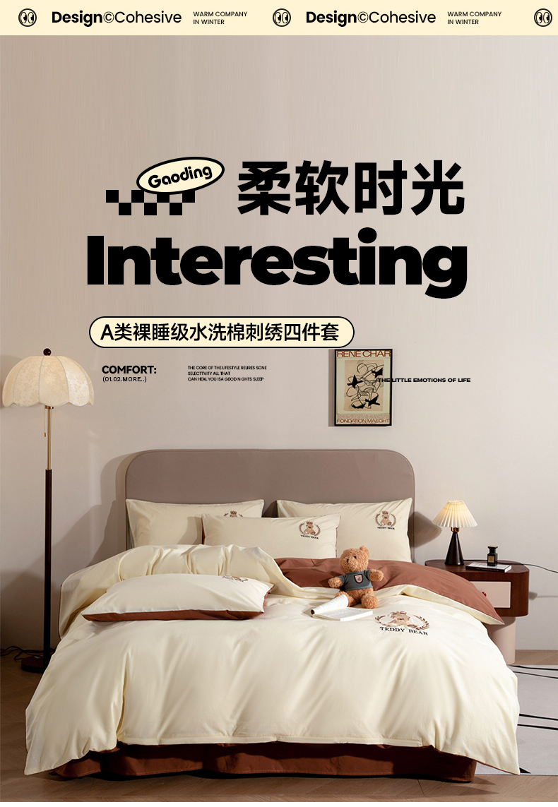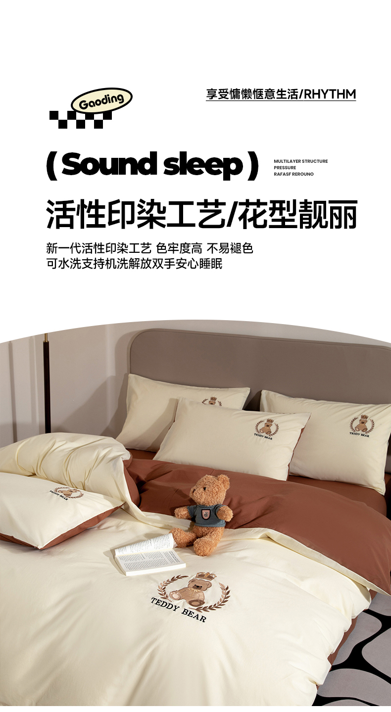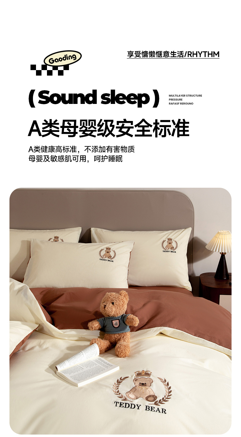 澳梵家居2025新款A类全棉水洗棉刺绣四件套-泰迪小熊 泰迪熊-白巧