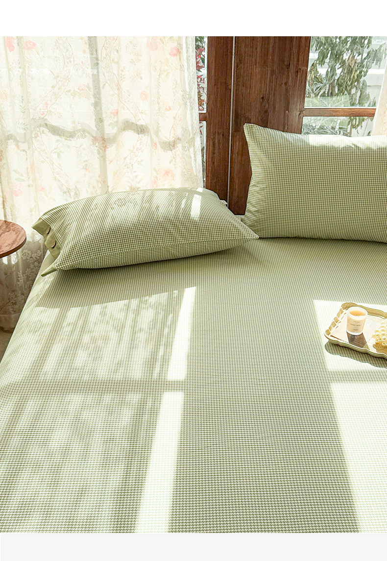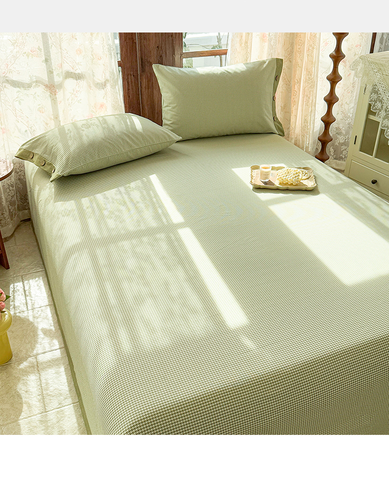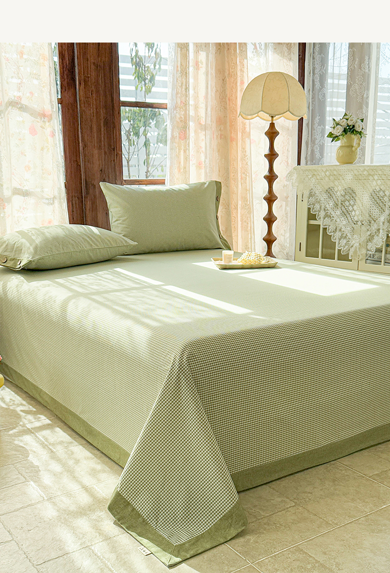 简宜家居 2025新款宽边纯棉全棉老粗布床单 千鸟格-绿野宽边