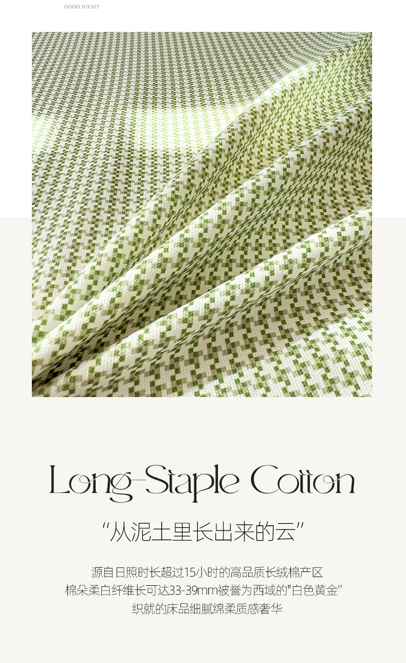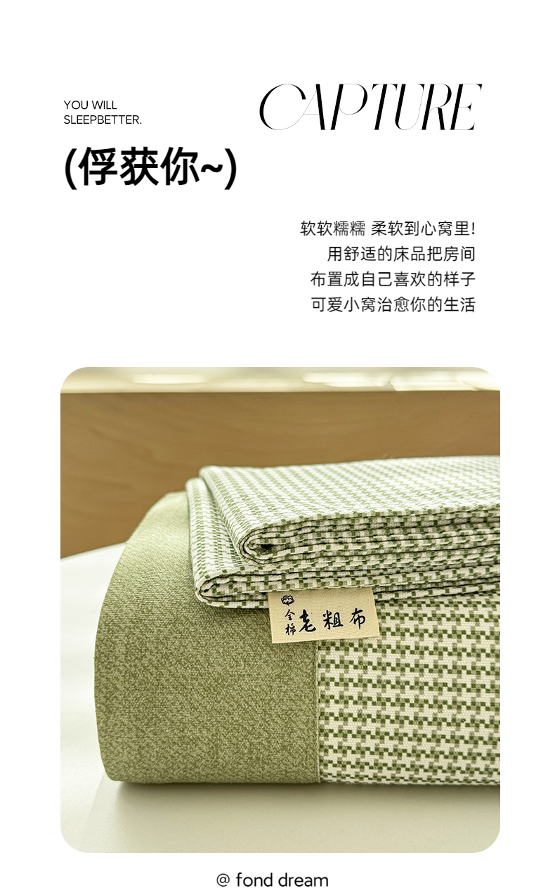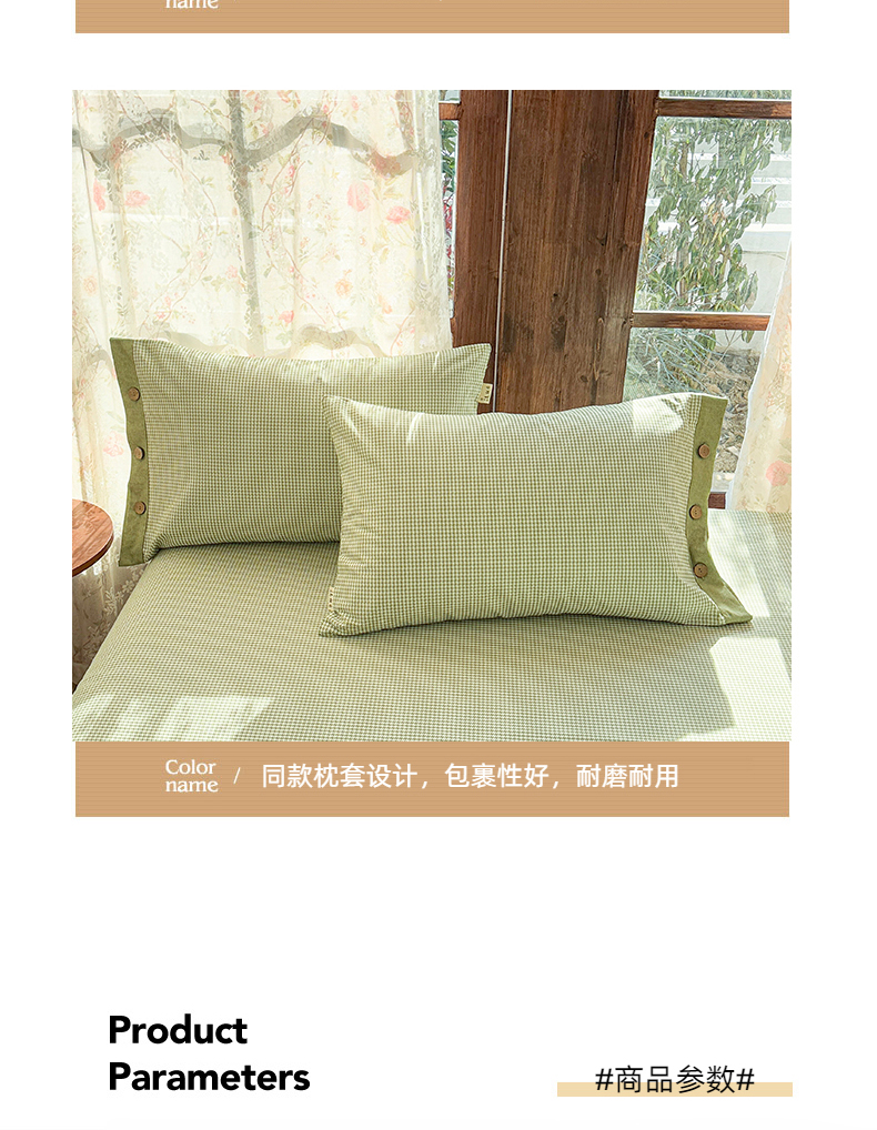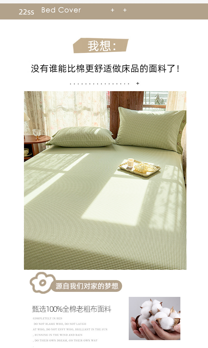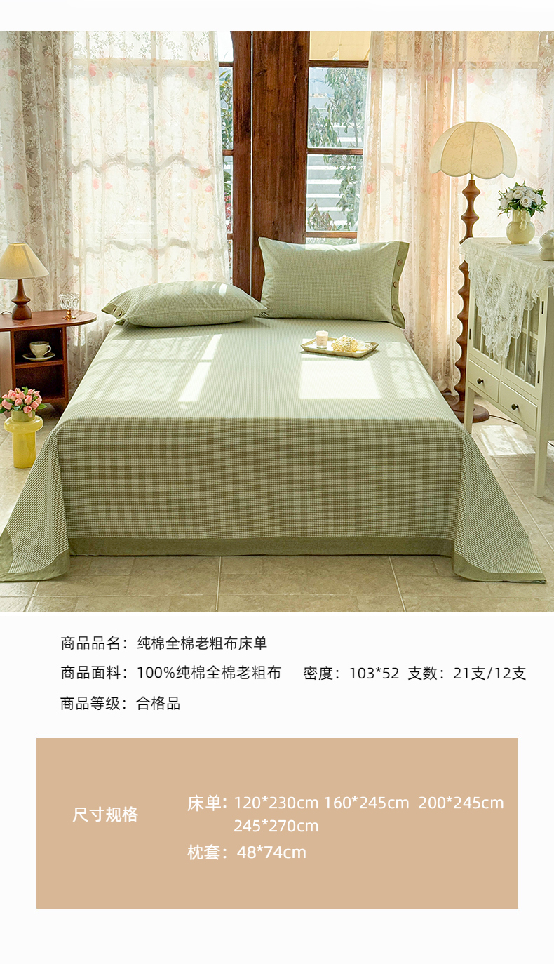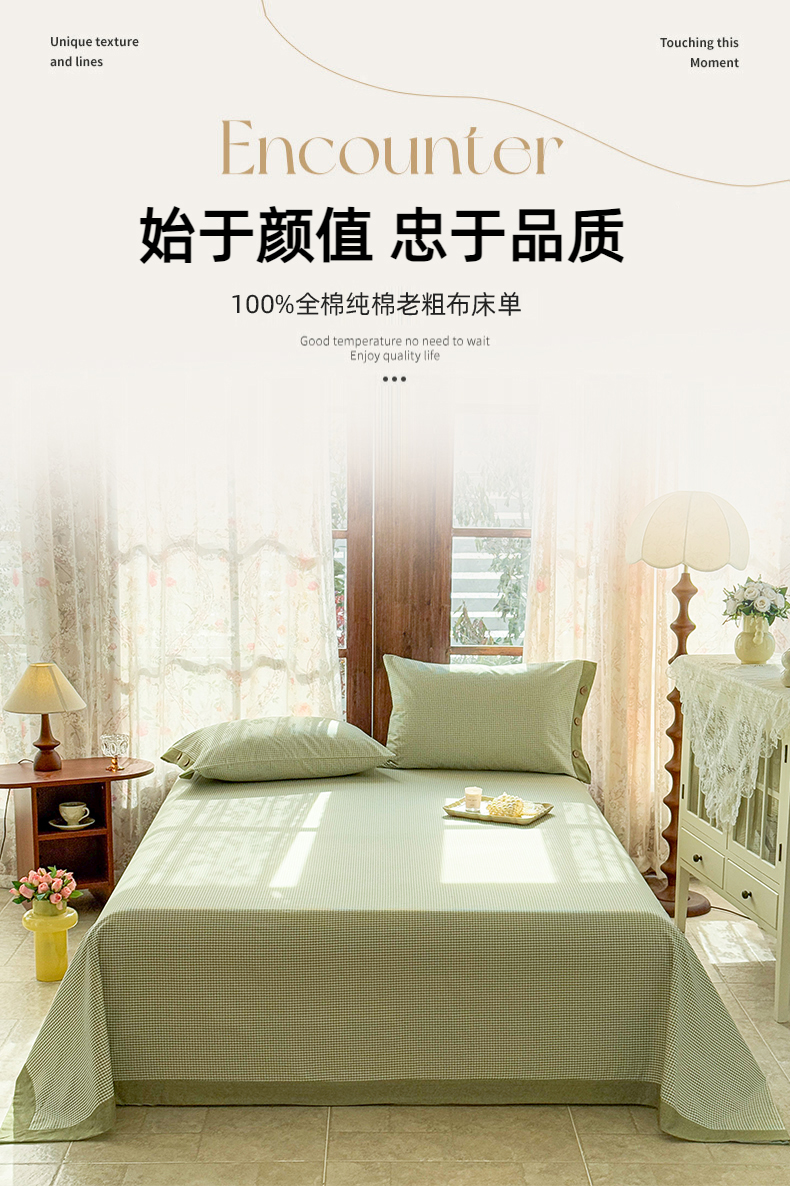 • 91家纺网 家纺一手货源 找家纺 简宜家居 2025新款宽边纯棉全棉老粗布床单 千鸟格-绿野宽边