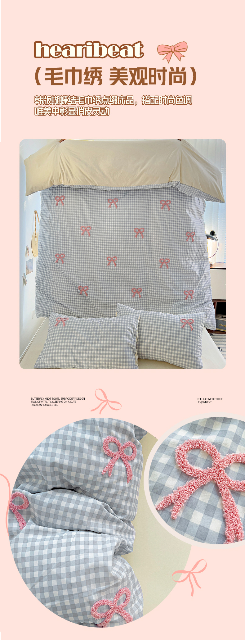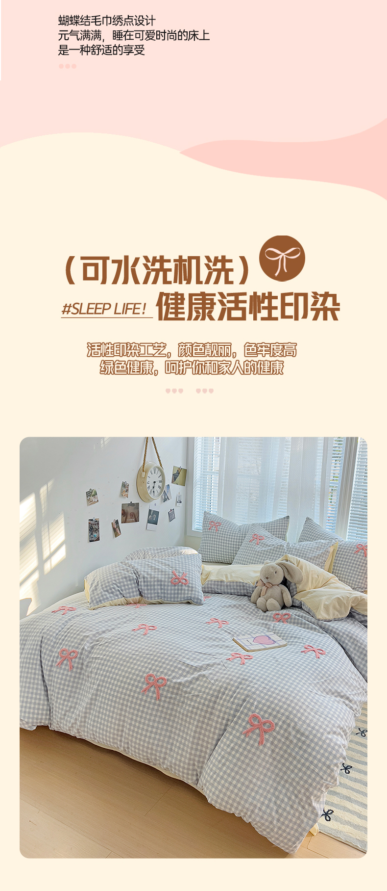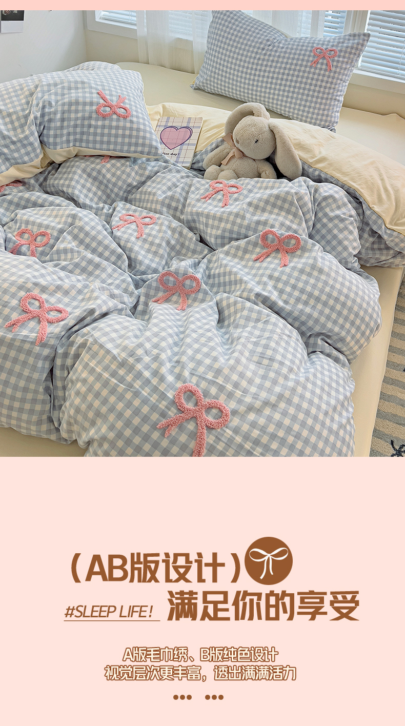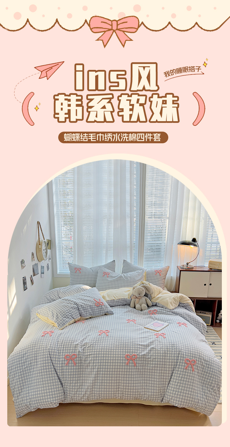 当前位置: 91家纺网 > 商品网购 > 床品套件 > 四件套 > 毛巾绣四件套 > 灰鲸2025新款ins韩系软妹风蝴蝶结毛巾绣四件套 蝴蝶结(蓝格+奶油黄)