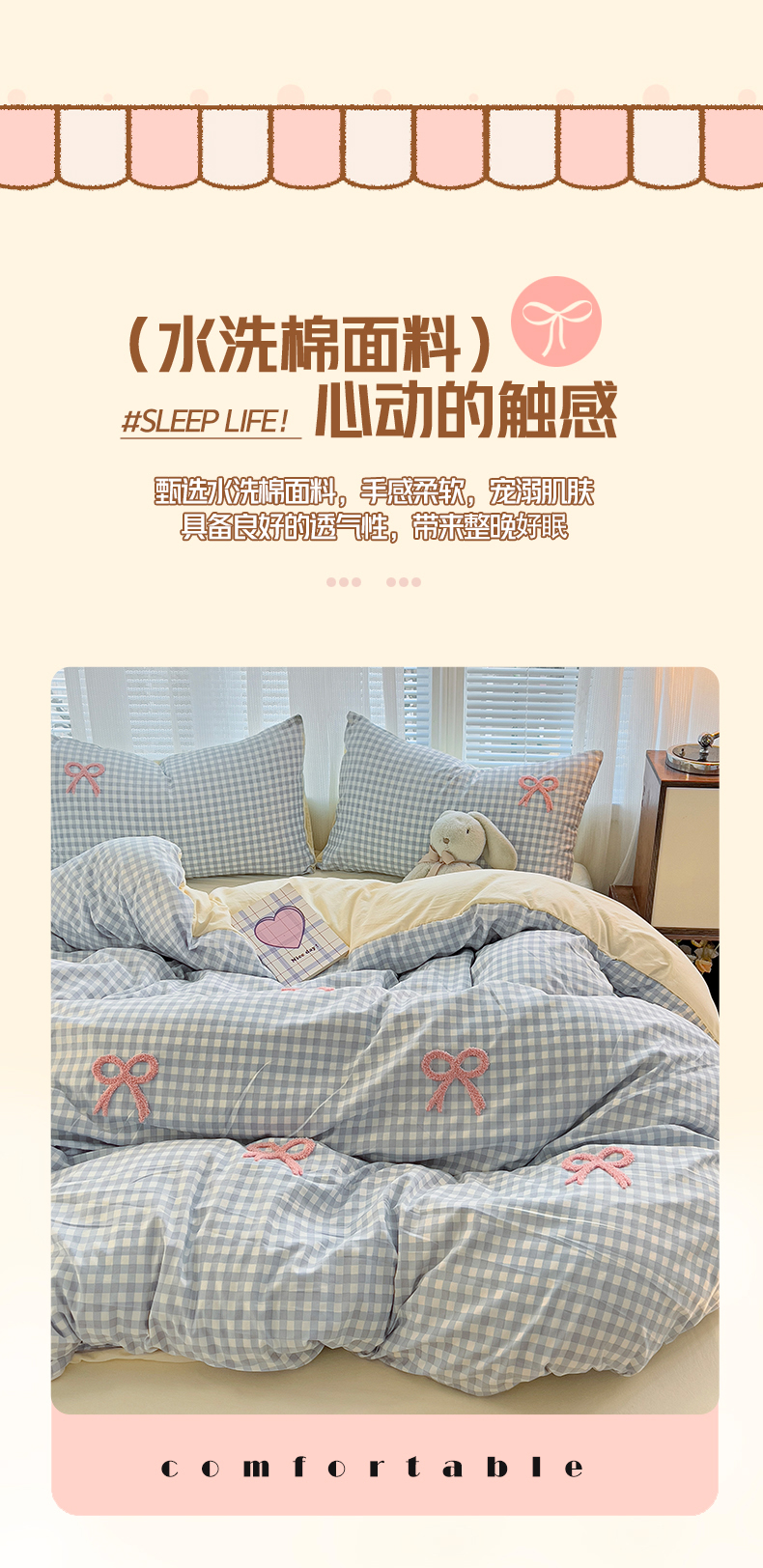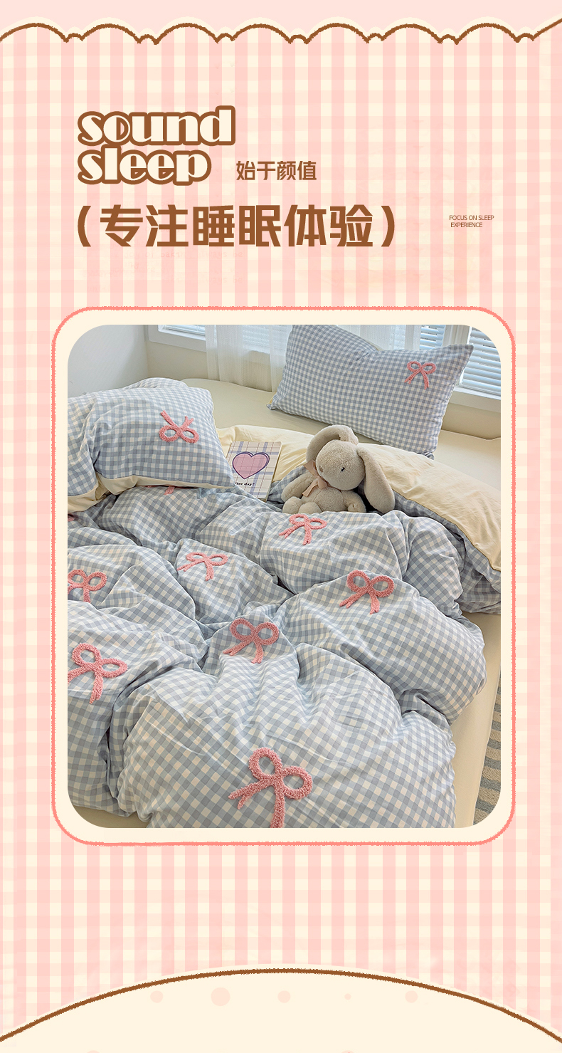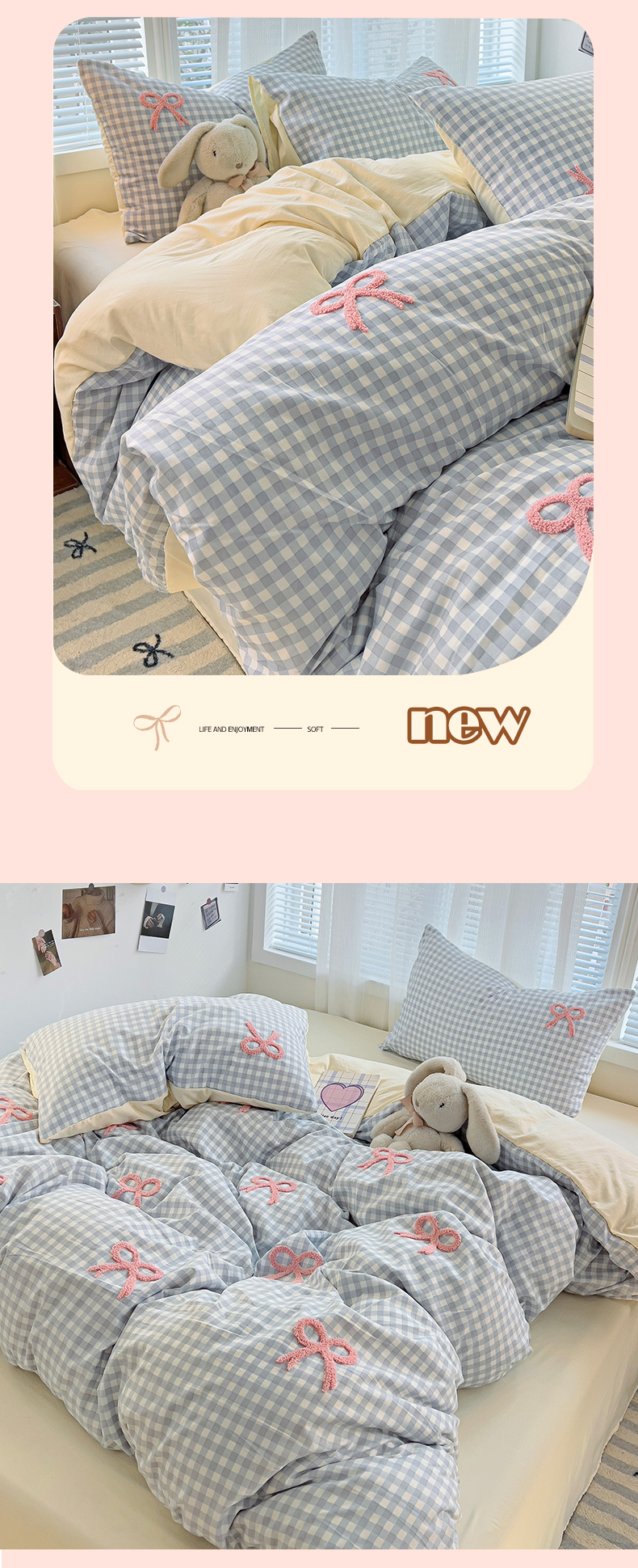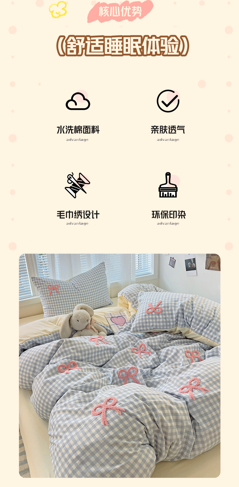 当前位置: 91家纺网 > 商品网购 > 床品套件 > 四件套 > 毛巾绣四件套 > 灰鲸2025新款ins韩系软妹风蝴蝶结毛巾绣四件套 蝴蝶结(蓝格+奶油黄)