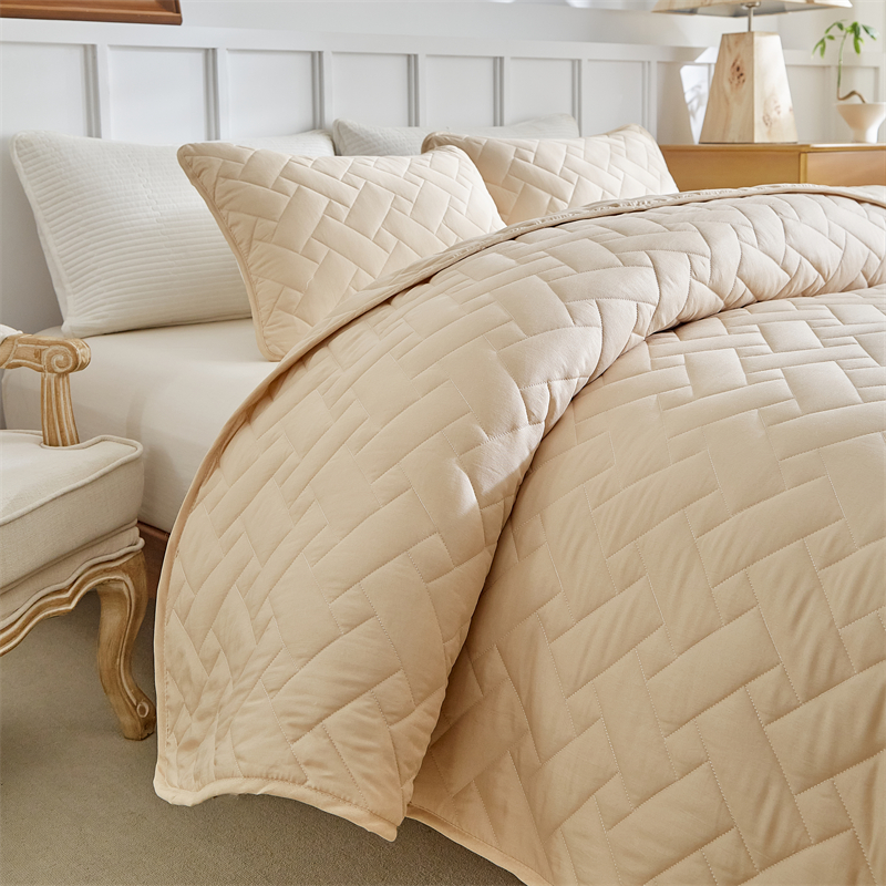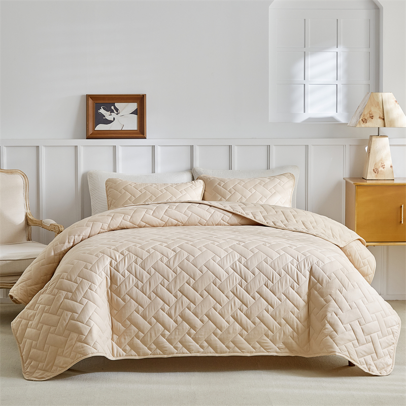 温宁家纺 2025新款长方格床盖三件套 国外薄被 长方格-米色