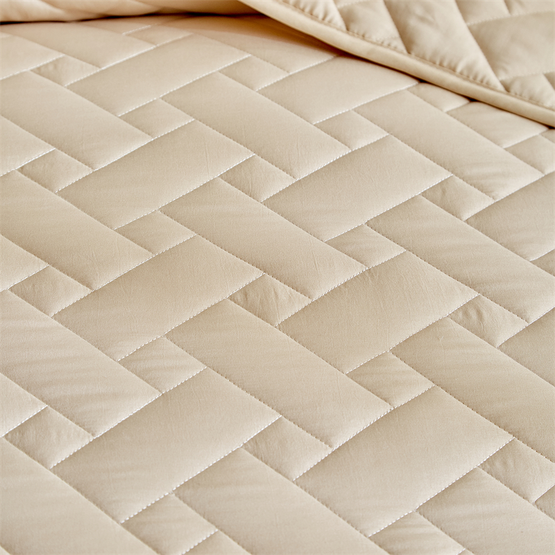 (总)温宁家纺 2025新款跨境双面化纤水洗棉小方块夹棉四季床盖(国外也当做夏被),绿色,米色,银灰
