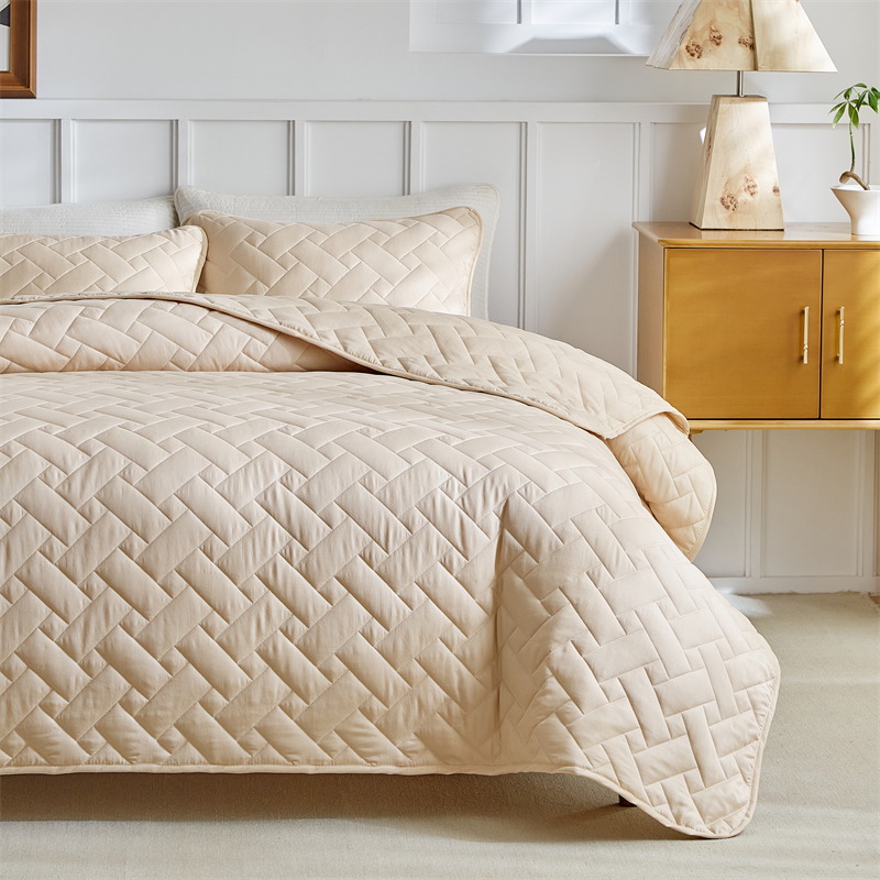 商品名称:温宁家纺 2025新款长方格床盖三件套 国外薄被 长方格-米色