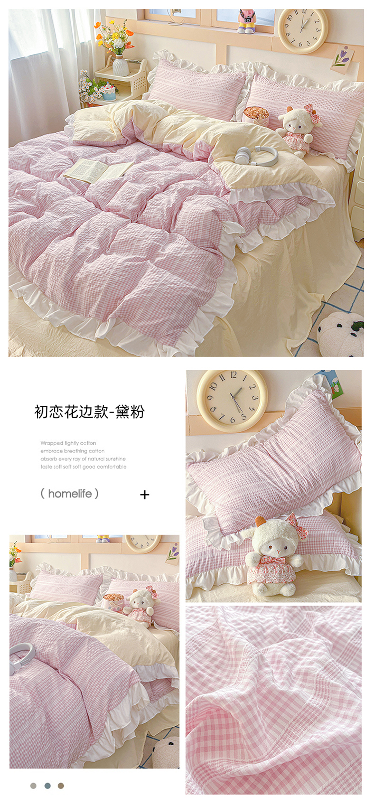 当前位置: 91家纺网 > 商品网购 > 床品套件 > 四件套 > 全棉普通四件套 > 慕希家纺 2025新款针织棉泡泡纱韩版工艺花边款四件套 花边款-初恋-粉芝士