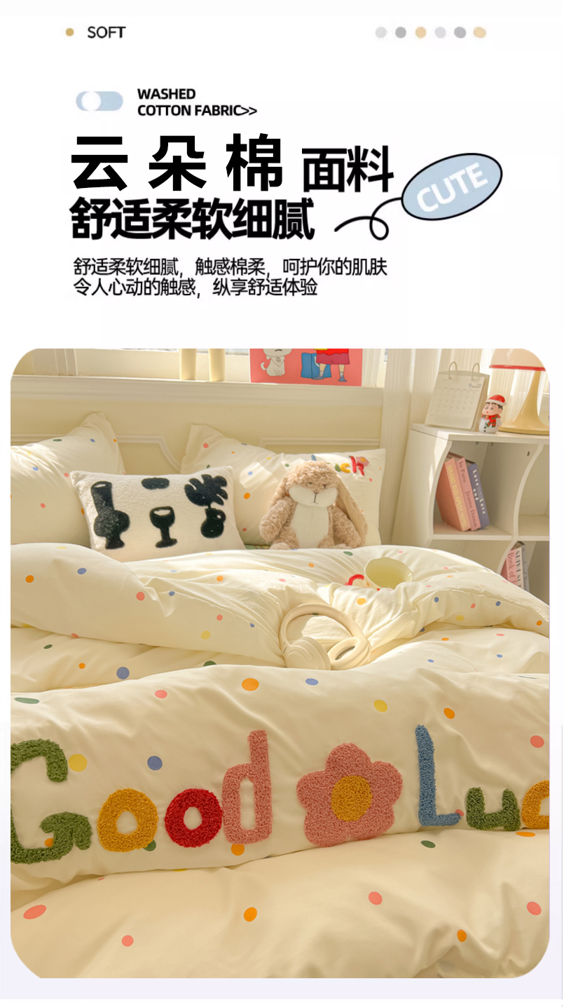 商品名称:(总)子钦家纺 2025春夏新款云朵棉毛巾绣跑量款床单床笠四件套-小幸运