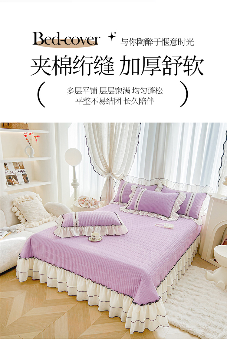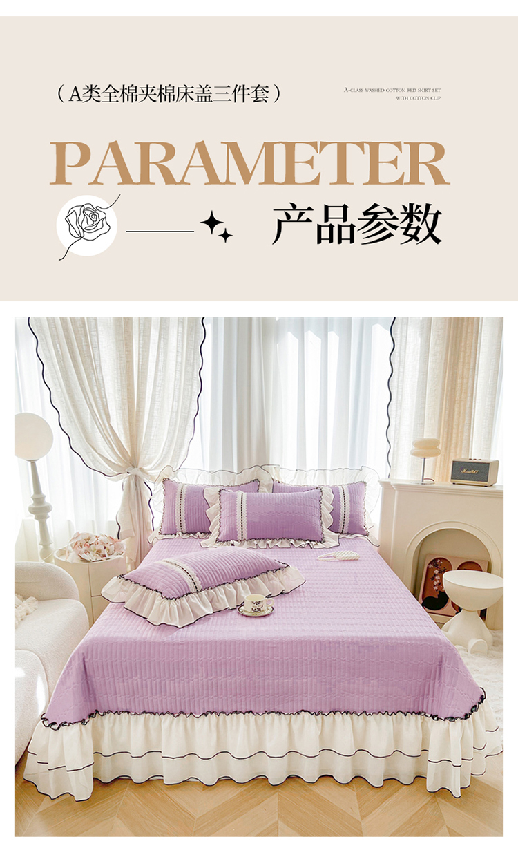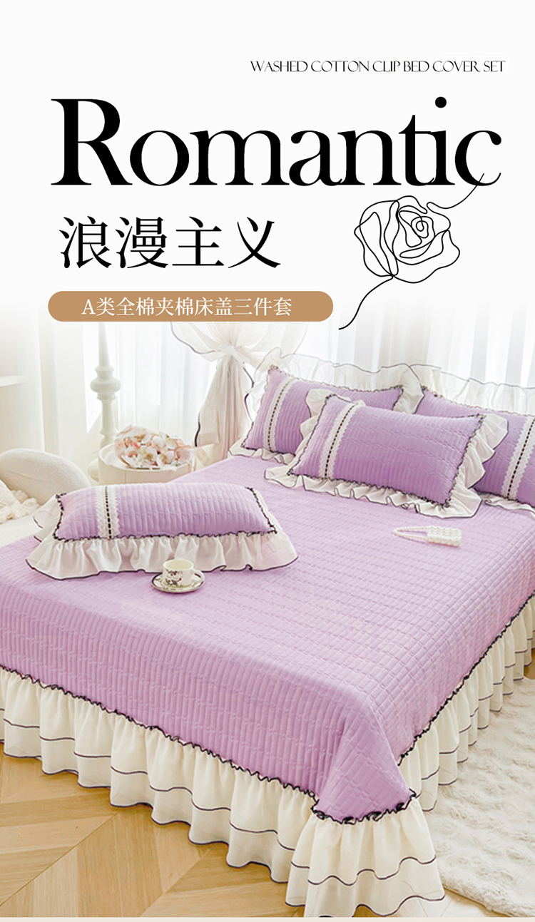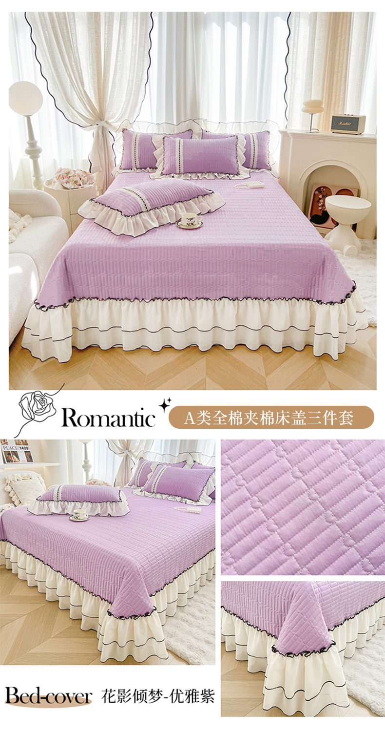 商品名称:虹星家纺 2025年新款全棉床盖三件套-花影倾梦 花影倾梦-优雅紫