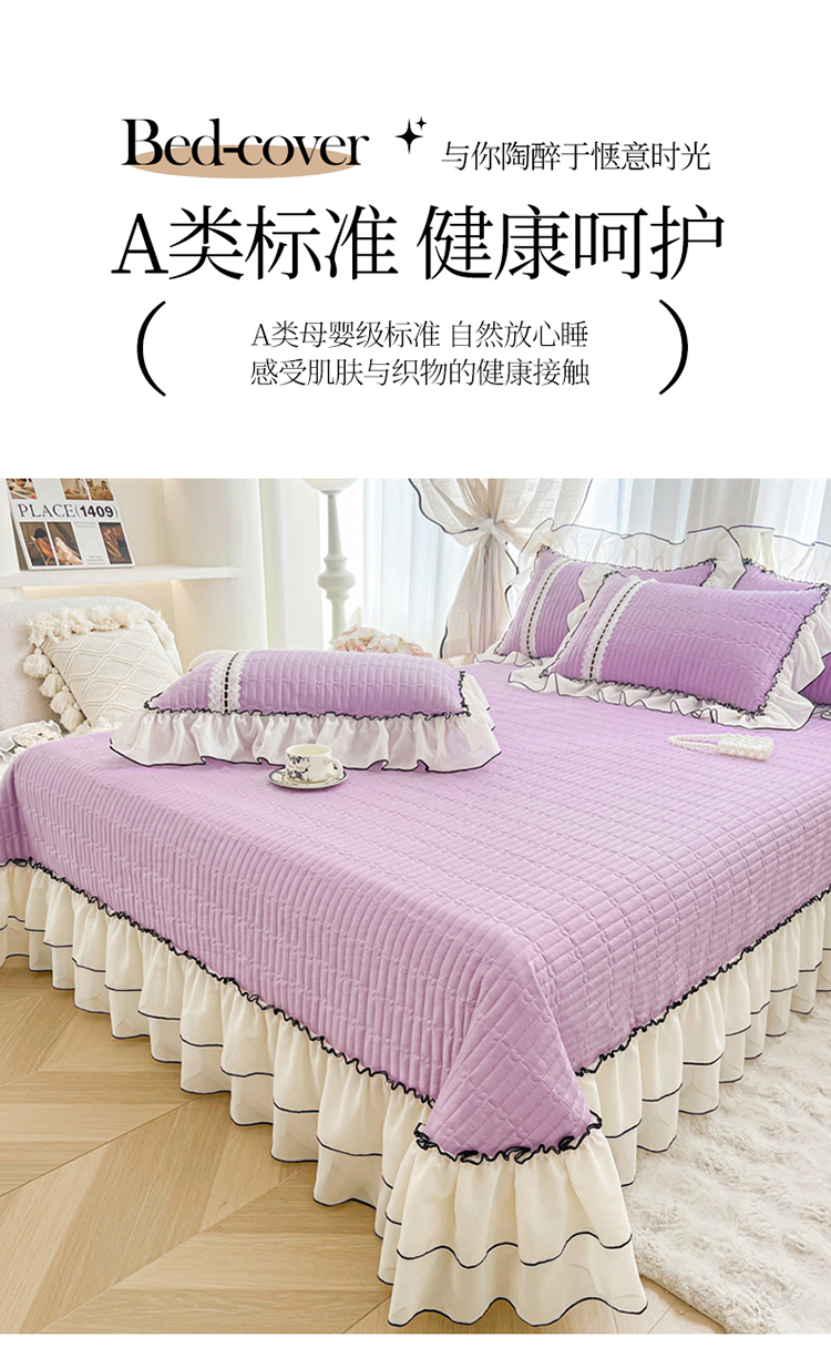 (总)虹星家纺 2025新款A类冰感凉豆豆床裙席三件套-素夏,素夏-抹茶绿,素夏-蜜桃粉,素夏-青果绿,素夏-天空蓝,素夏-月光灰