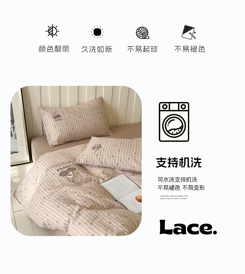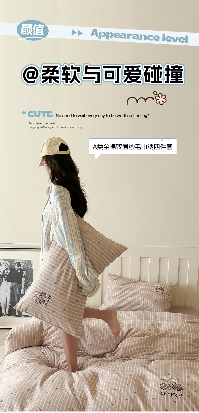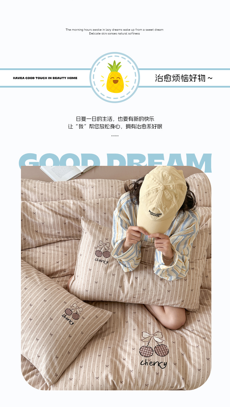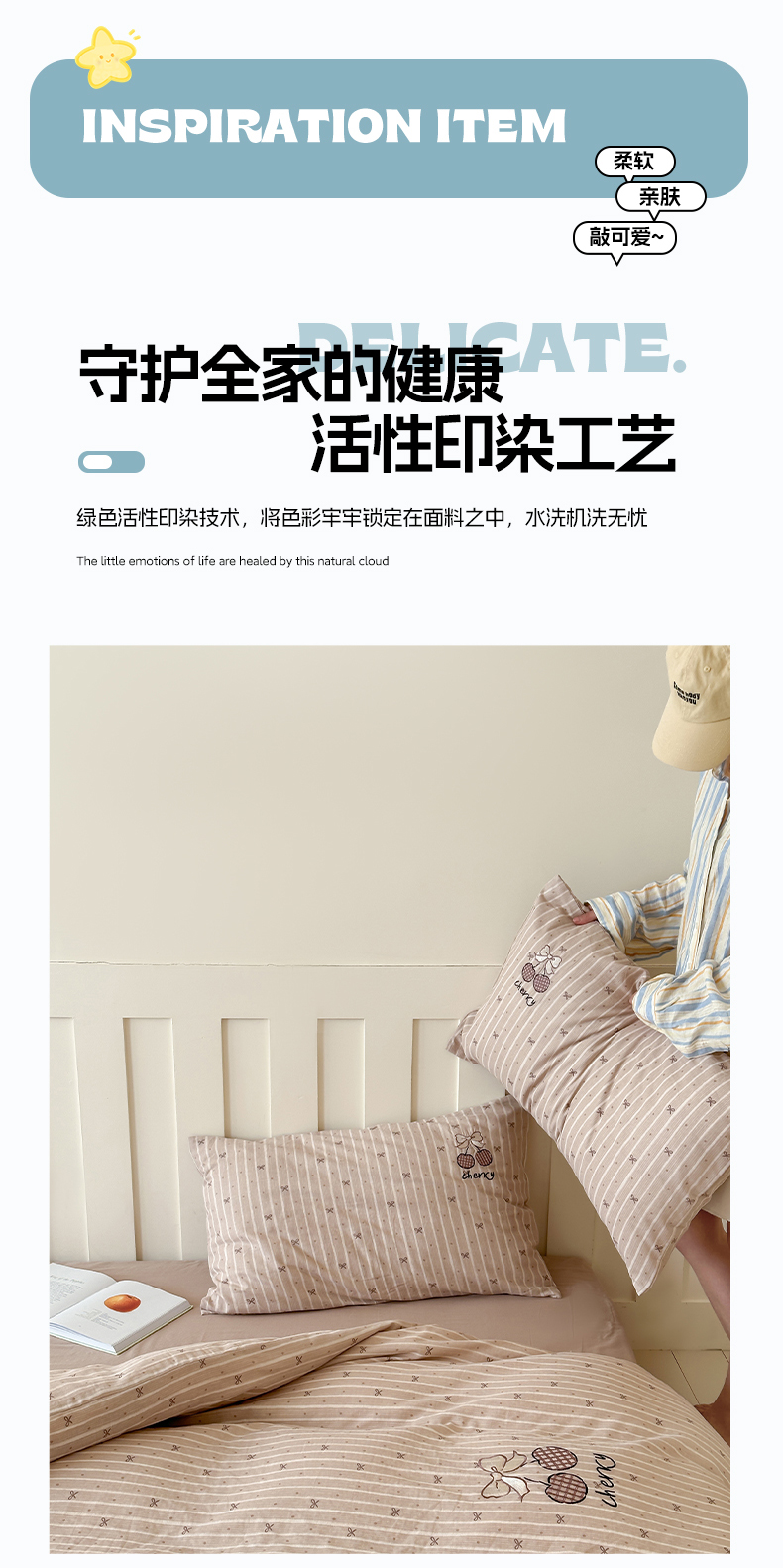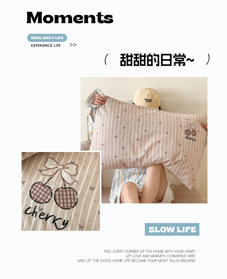 商品名称:圆岛家纺 2025新款全棉双层纱贴布绣四件套 樱桃慕斯