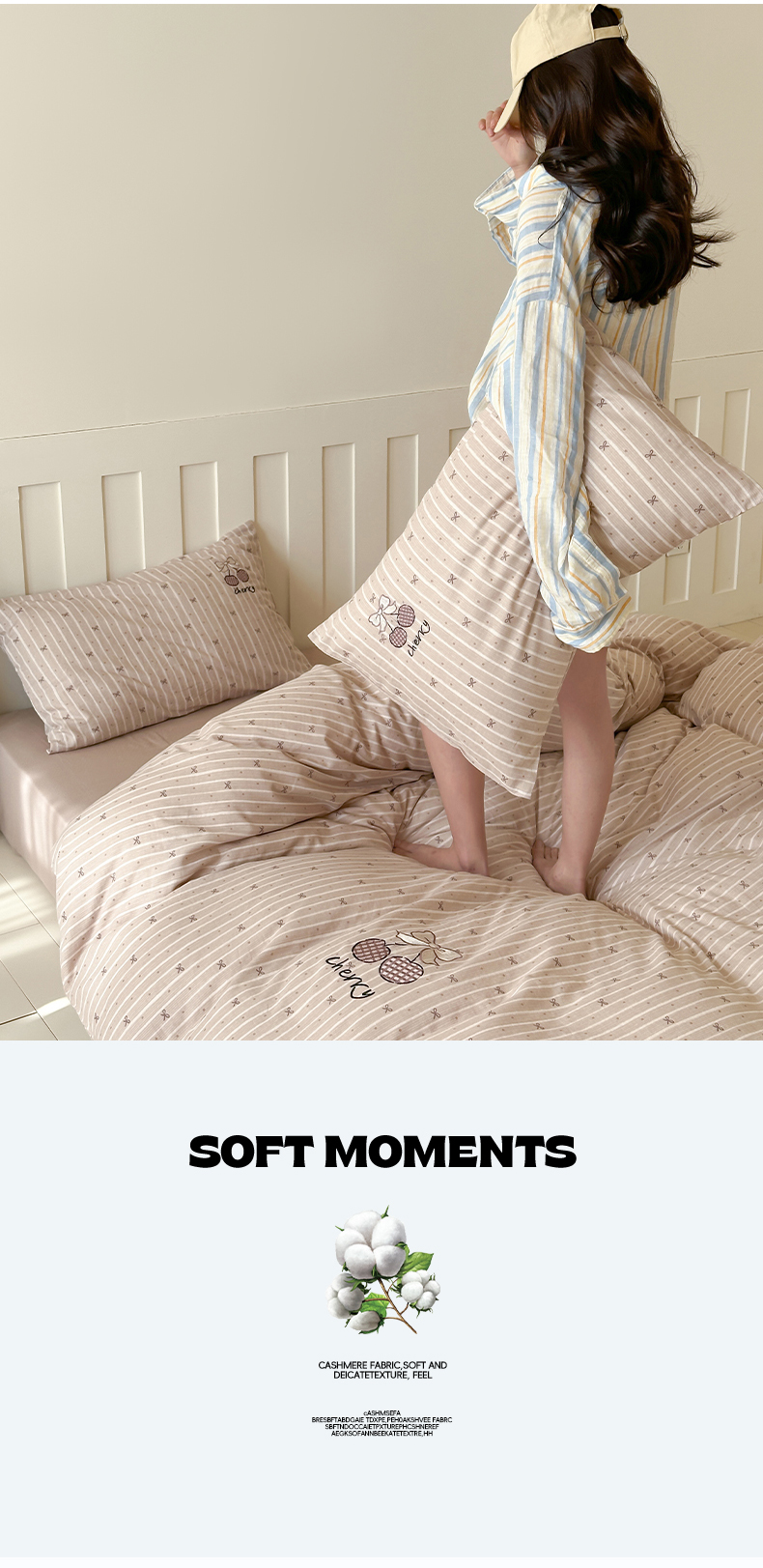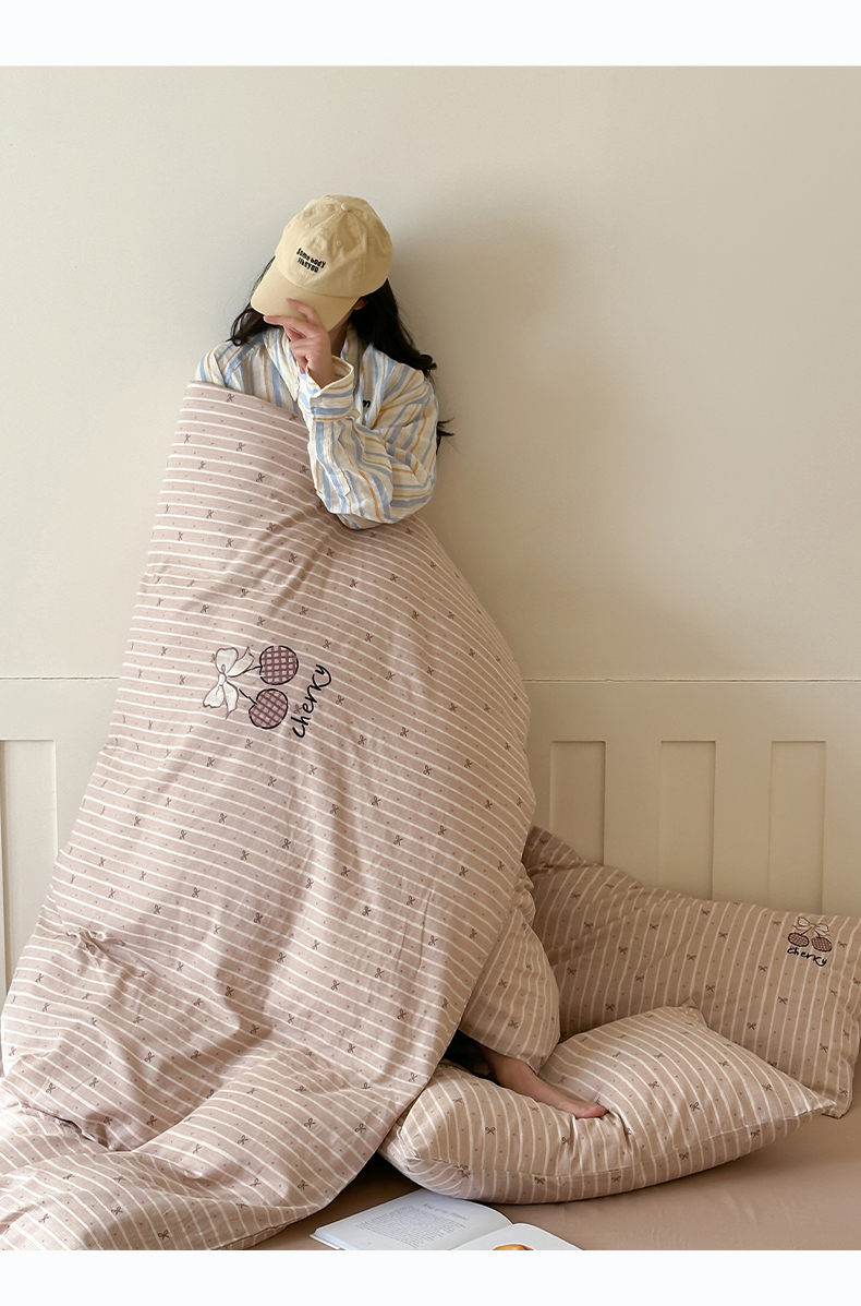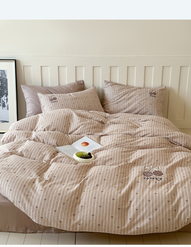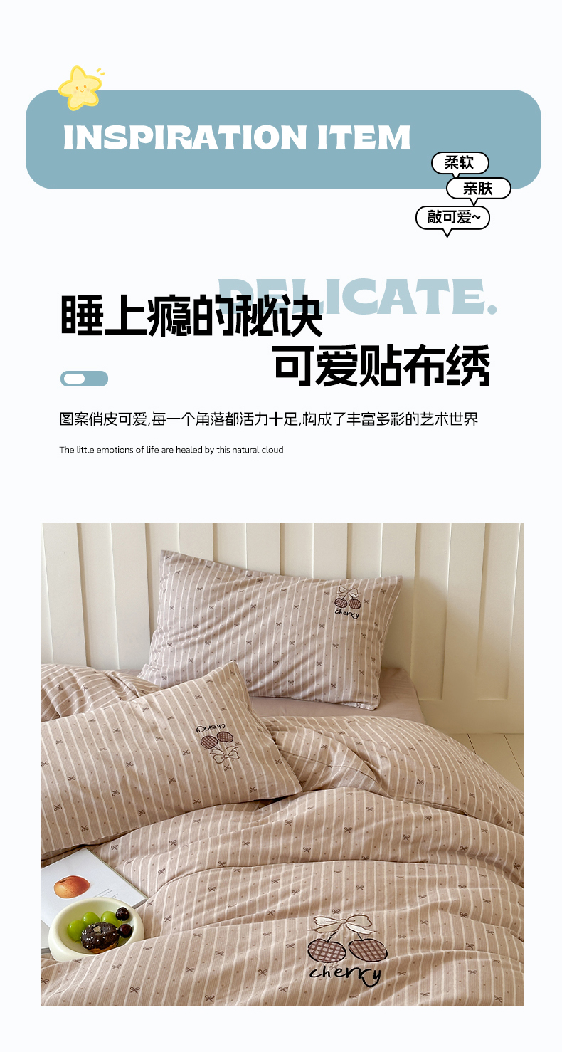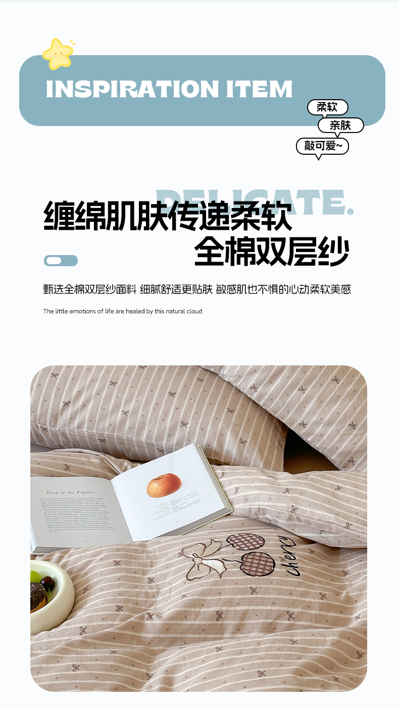 圆岛家纺 2025新款全棉双层纱贴布绣四件套 樱桃慕斯