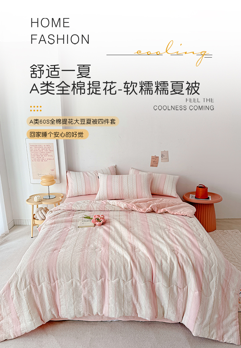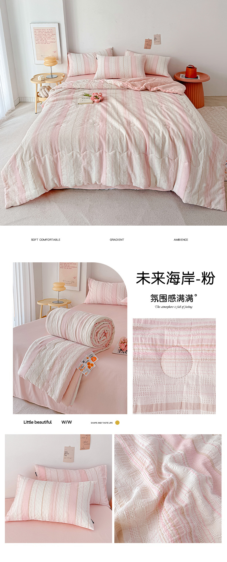 静家居-简约原创家纺 2025新款A类全棉提花未来海岸夏被四件套 未来海岸-粉