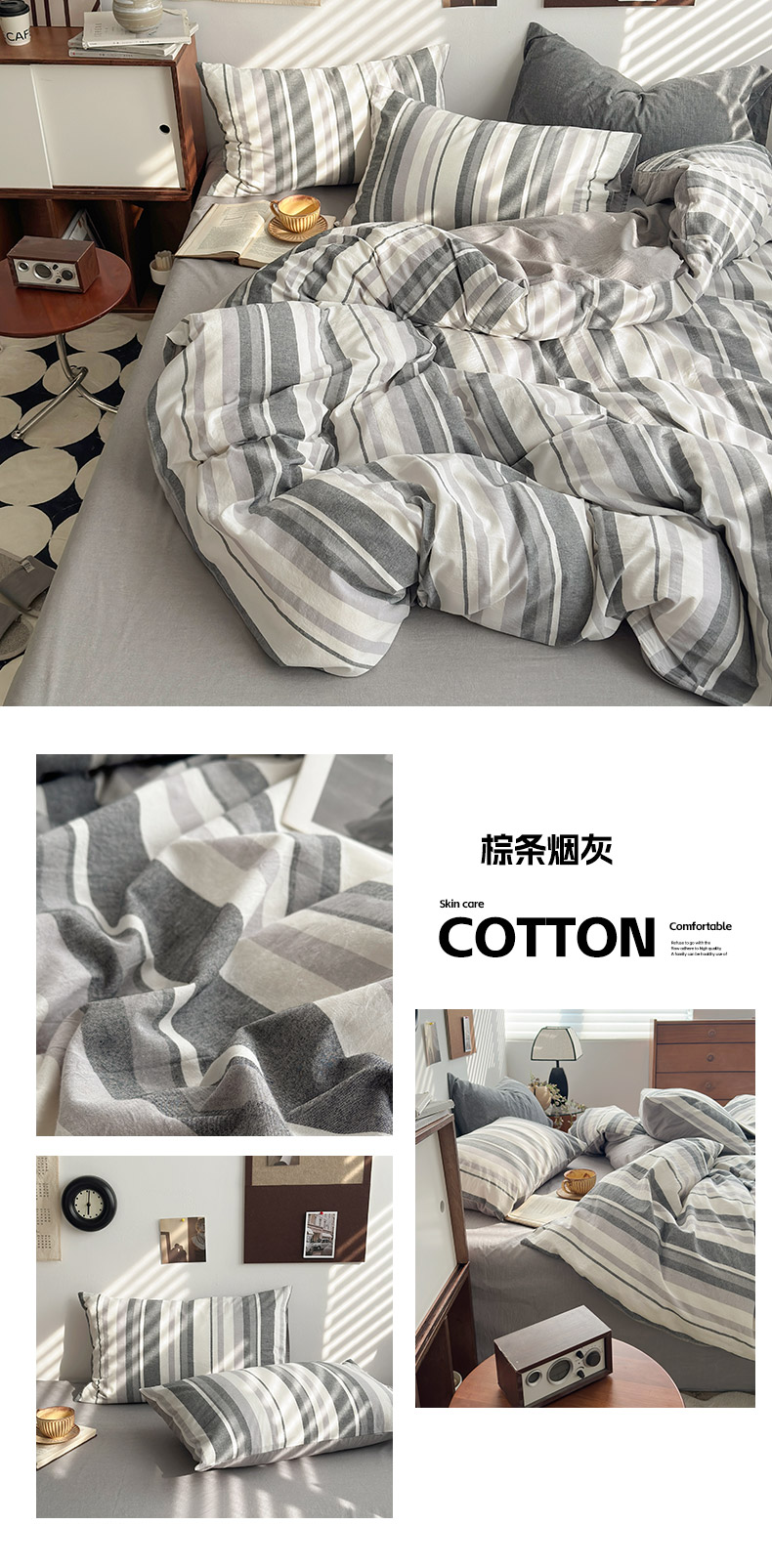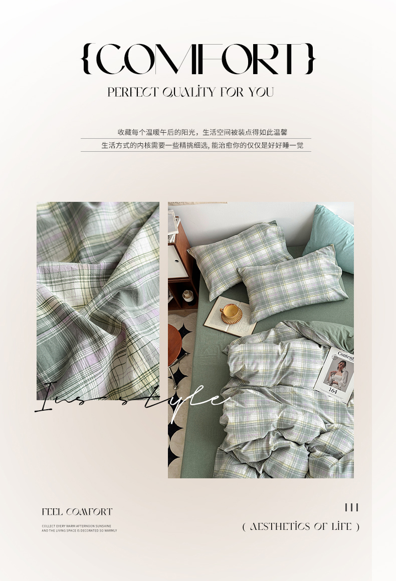 当前位置: 91家纺网 > 商品网购 > 床品套件 > 四件套 > 色织四件套 > 水洗的故事2025新款A类AB版全棉色织水洗棉四件套 椰灰大格