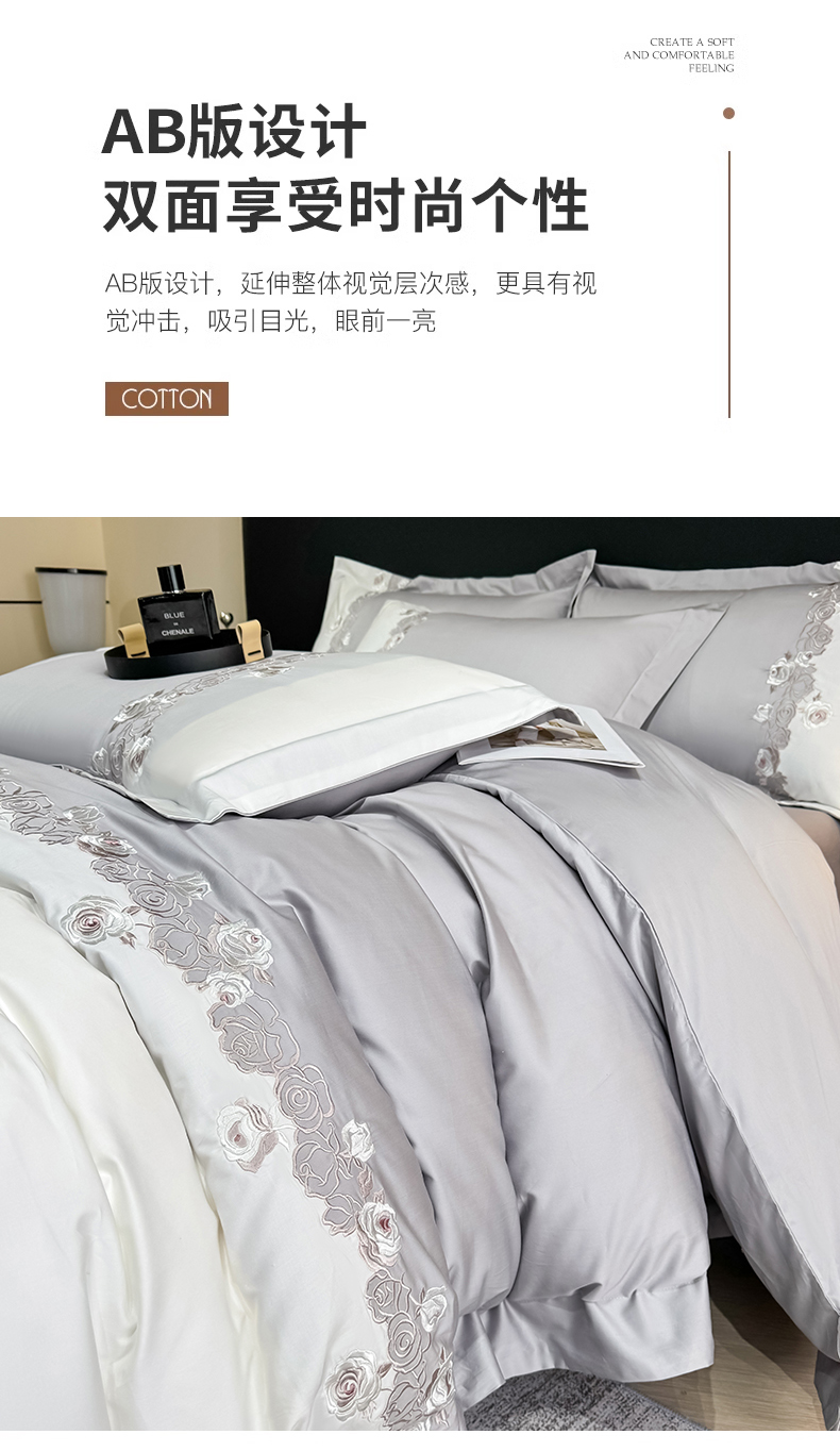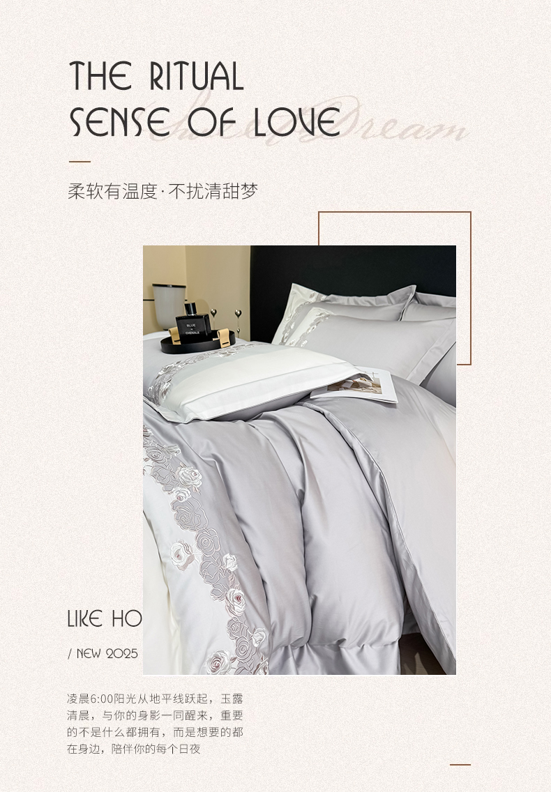 KA家纺 2025春夏新款全棉绣花四件套 初见系列 初见星光银