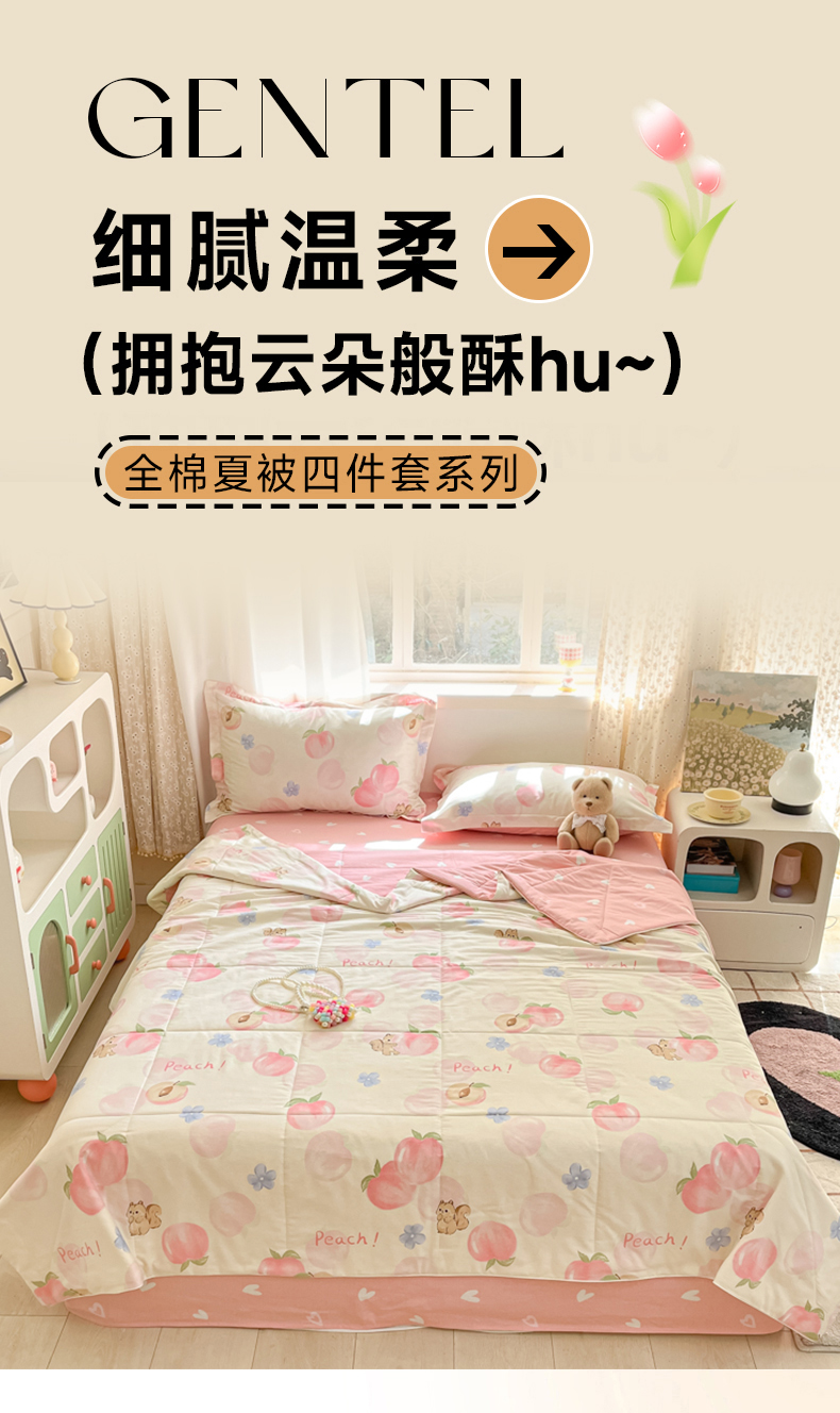 • 91家纺网 家纺一手货源 找家纺 帕拉美拉 2025新款全棉棉花夏被春秋被四件套蜜桃松鼠-全棉棉花
