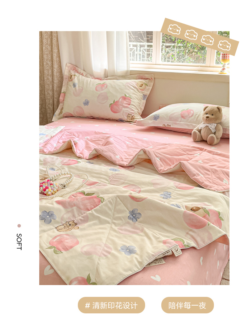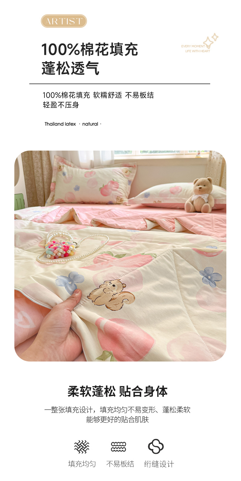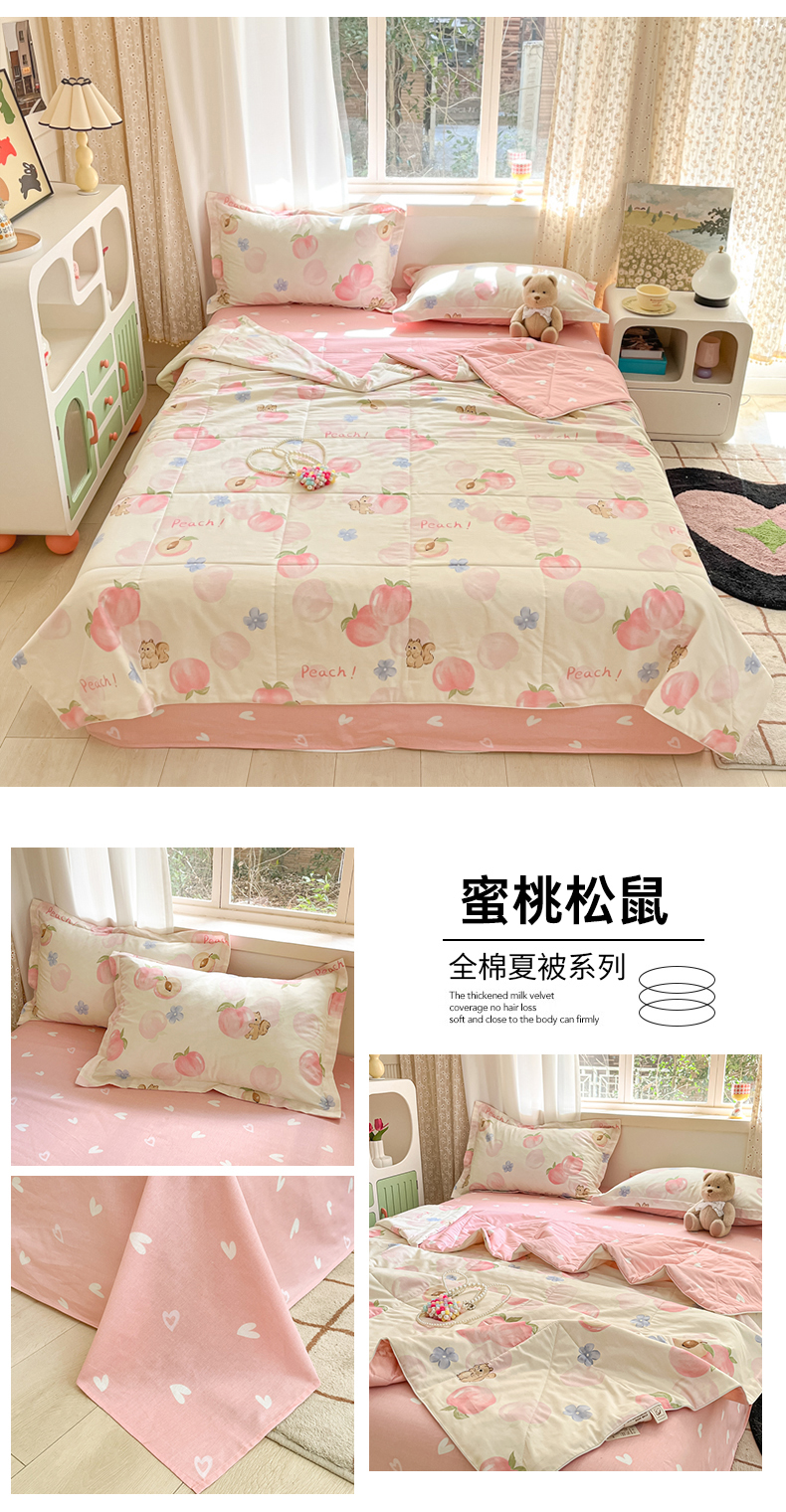 帕拉美拉 2025新款全棉棉花夏被春秋被四件套蜜桃松鼠-全棉棉花