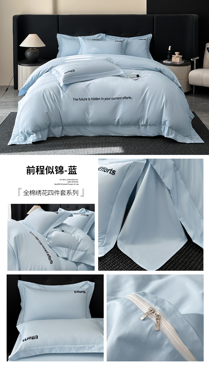 (总)【控价】新方向 2026新款刺绣50s双股全棉贡缎长绒棉四件套-自信,自信-蔷薇粉,自信-香槟,自信-星月蓝