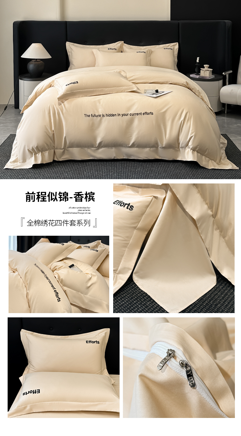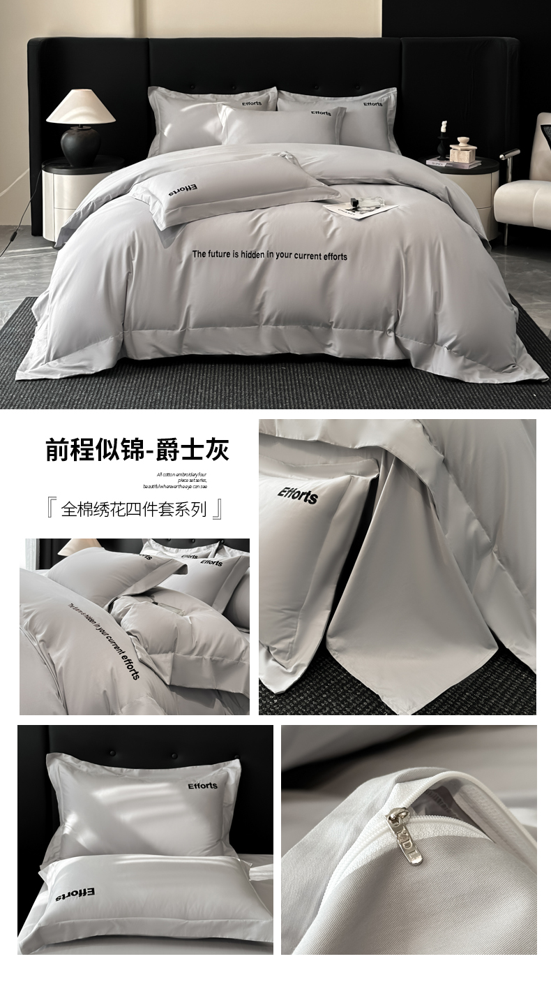 (总)【控价】新方向 2026新款 男士刺绣50s双股全棉贡缎长绒棉四件套-持之以恒,持之以恒-爵士灰,持之以恒-香槟