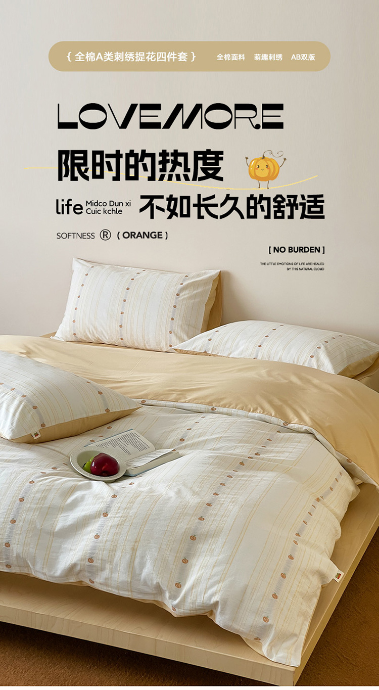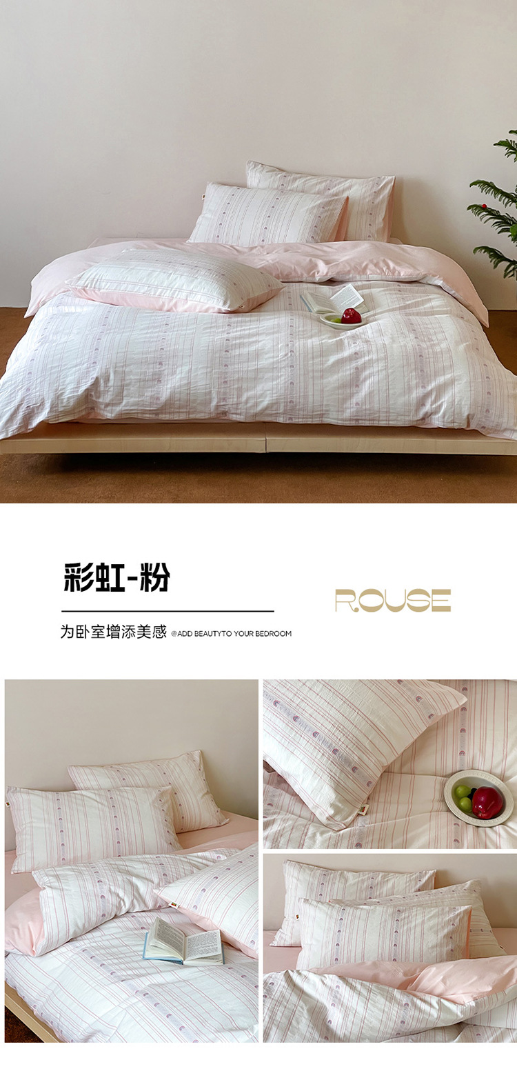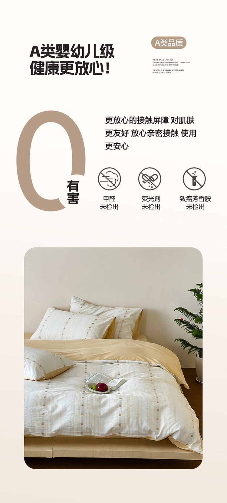 商品名称:2025【A类全棉刺绣提花四件套】日式无印刺绣A类提花四件套良品条纹床品套件全棉小清新双拼件套