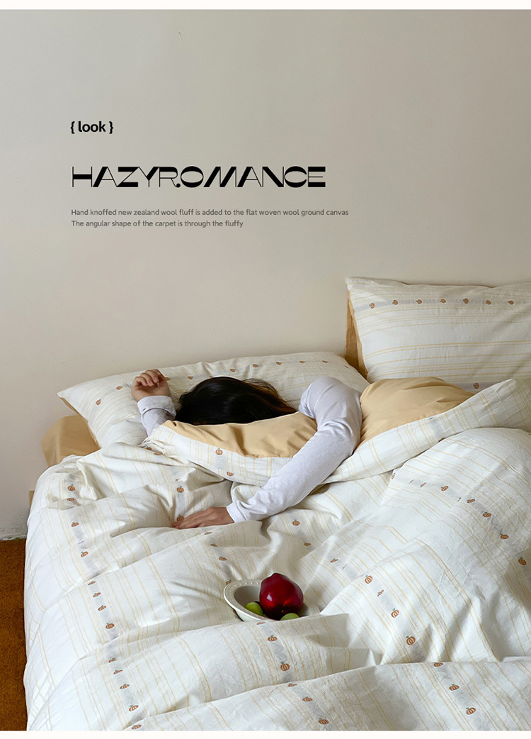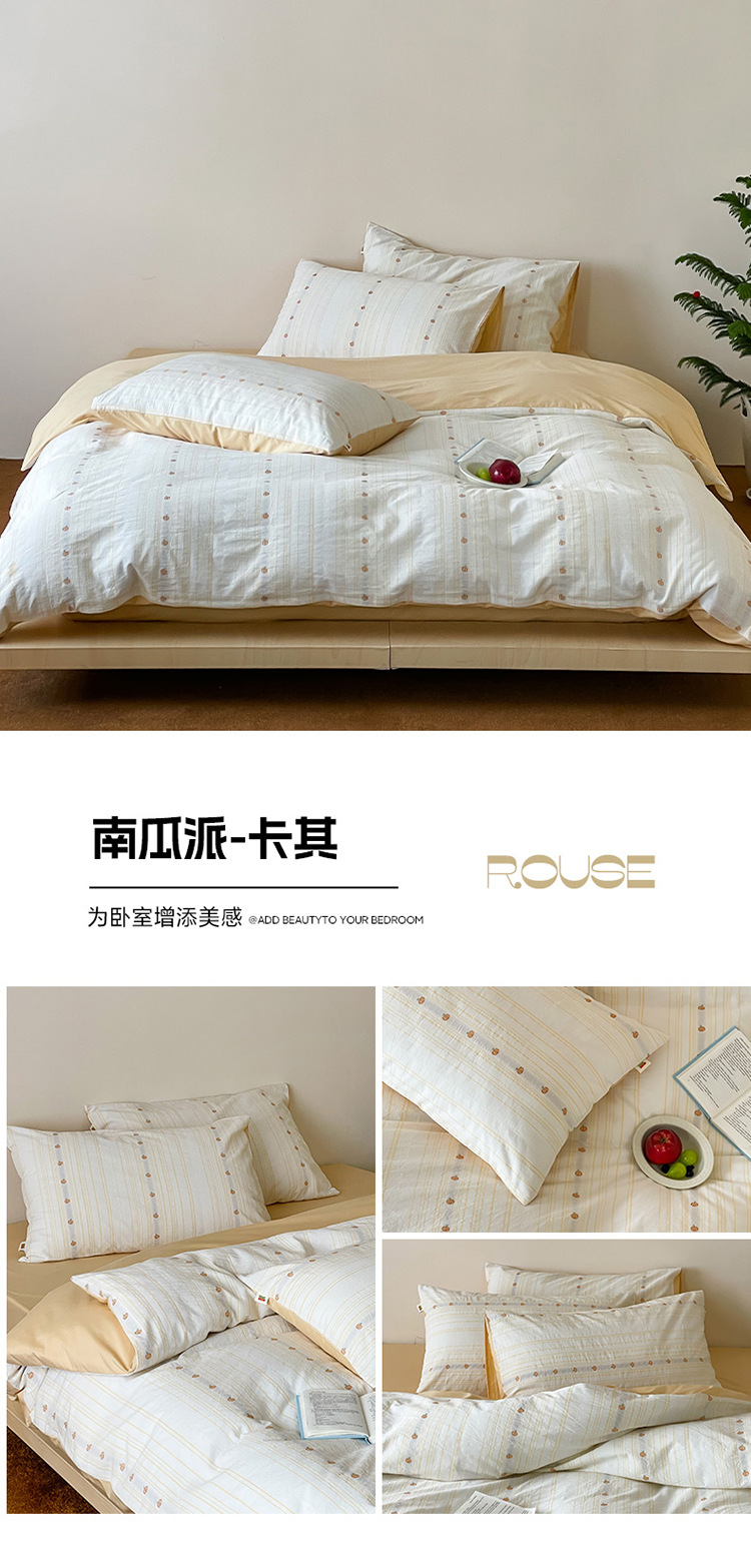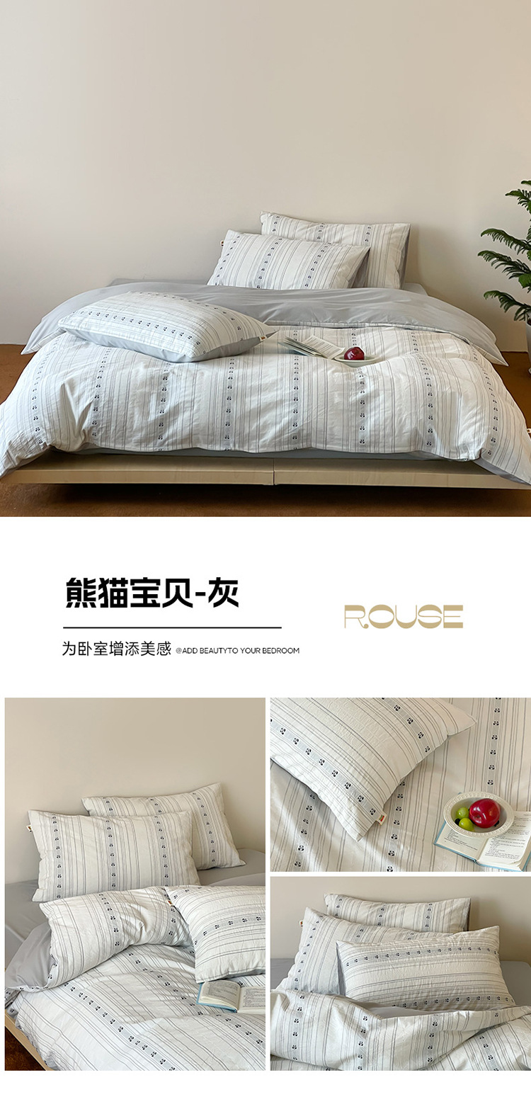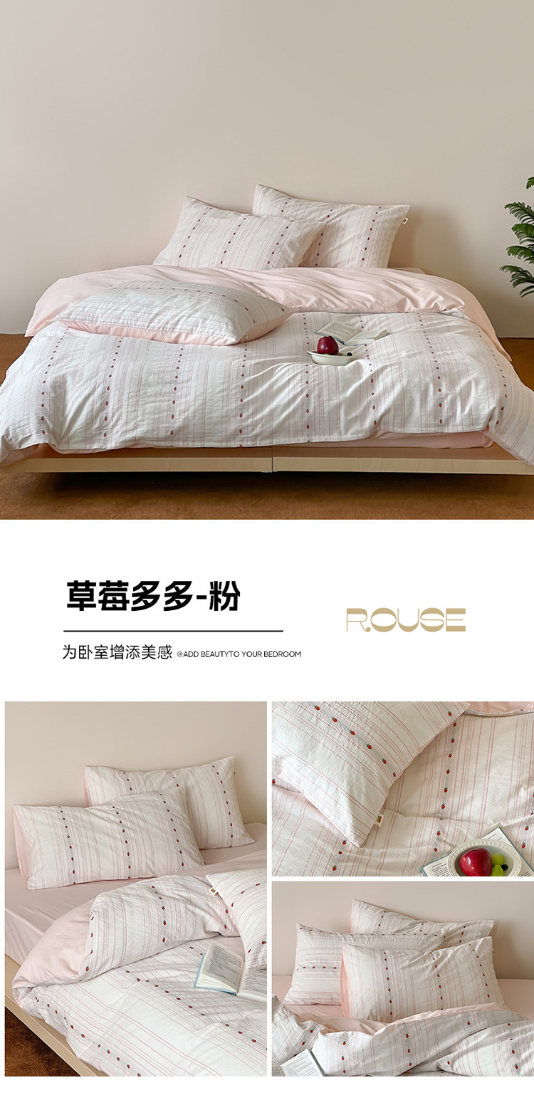 商品名称:2025【A类全棉刺绣提花四件套】日式无印刺绣A类提花四件套良品条纹床品套件全棉小清新双拼件套