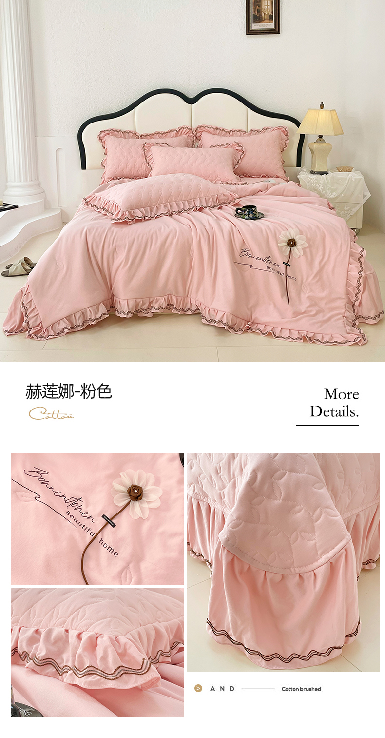 (总)金绣美居 2025新款卡通贴布绣款牛奶绒四件套-公主,公主粉,公主蓝