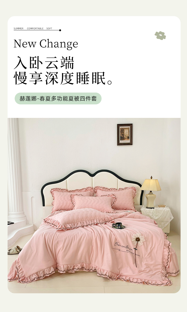 (总)金绣美居 2025春夏韩版被套床盖款多功能夏被四件套-赫莲娜(控价不低于149),海葵紫,米白,浅粉,天空蓝,新绿