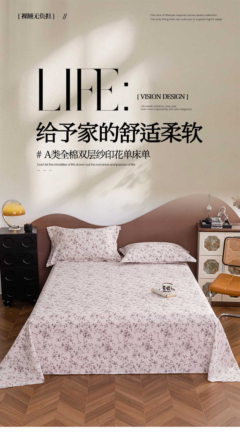 商品名称:锦罗绣 2025新款A类全棉双层纱单床单 绮然