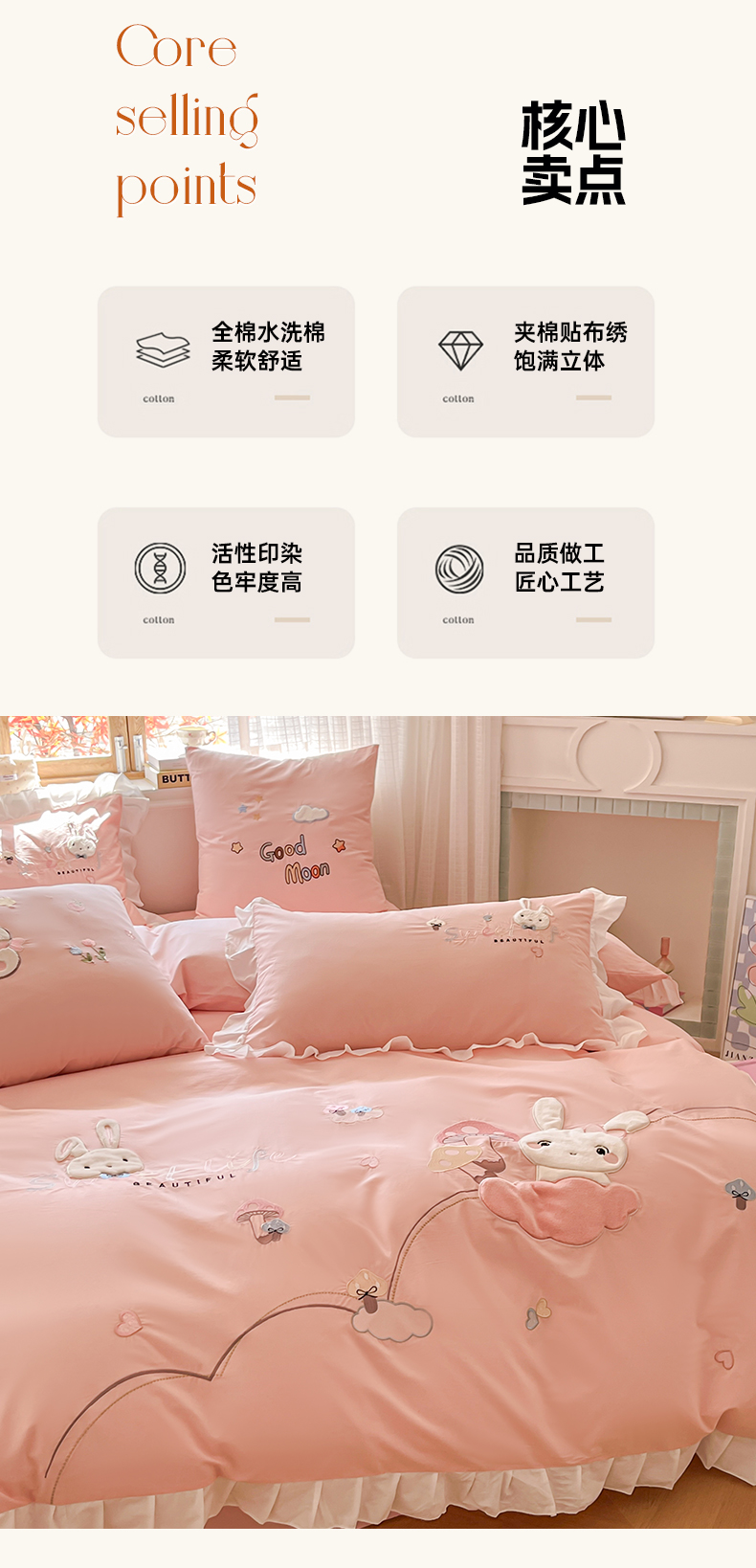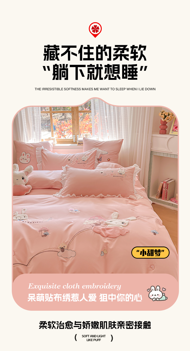 当前位置: 91家纺网 > 商品网购 > 床品套件 > 四件套 > 全棉普通四件套 > (总)恋绒2025新款亲肤全棉水洗棉纯棉贴布绣立体刺绣四件套系列—花边款(提供买家秀)送同款抱枕