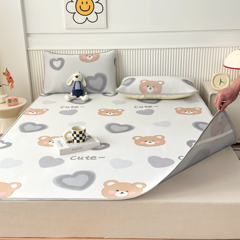 柏薇 2025新款三明治网眼印花凉席套件 爱心小熊