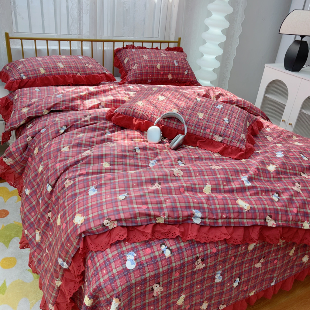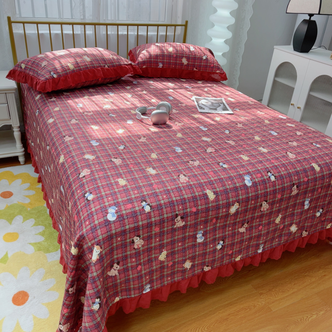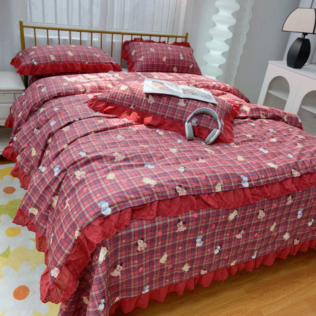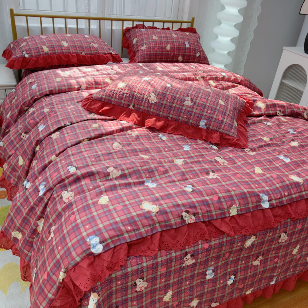 暖居 2025春夏款高温砂洗棉花床盖三件套被套四件套同款纯棉夏被空调被四季 新年红