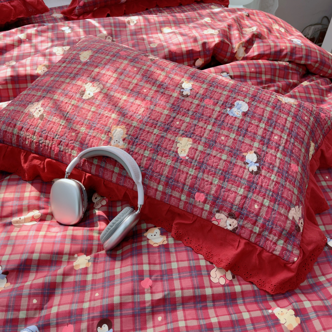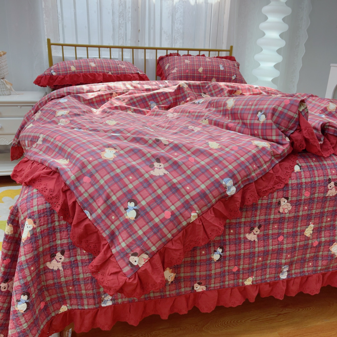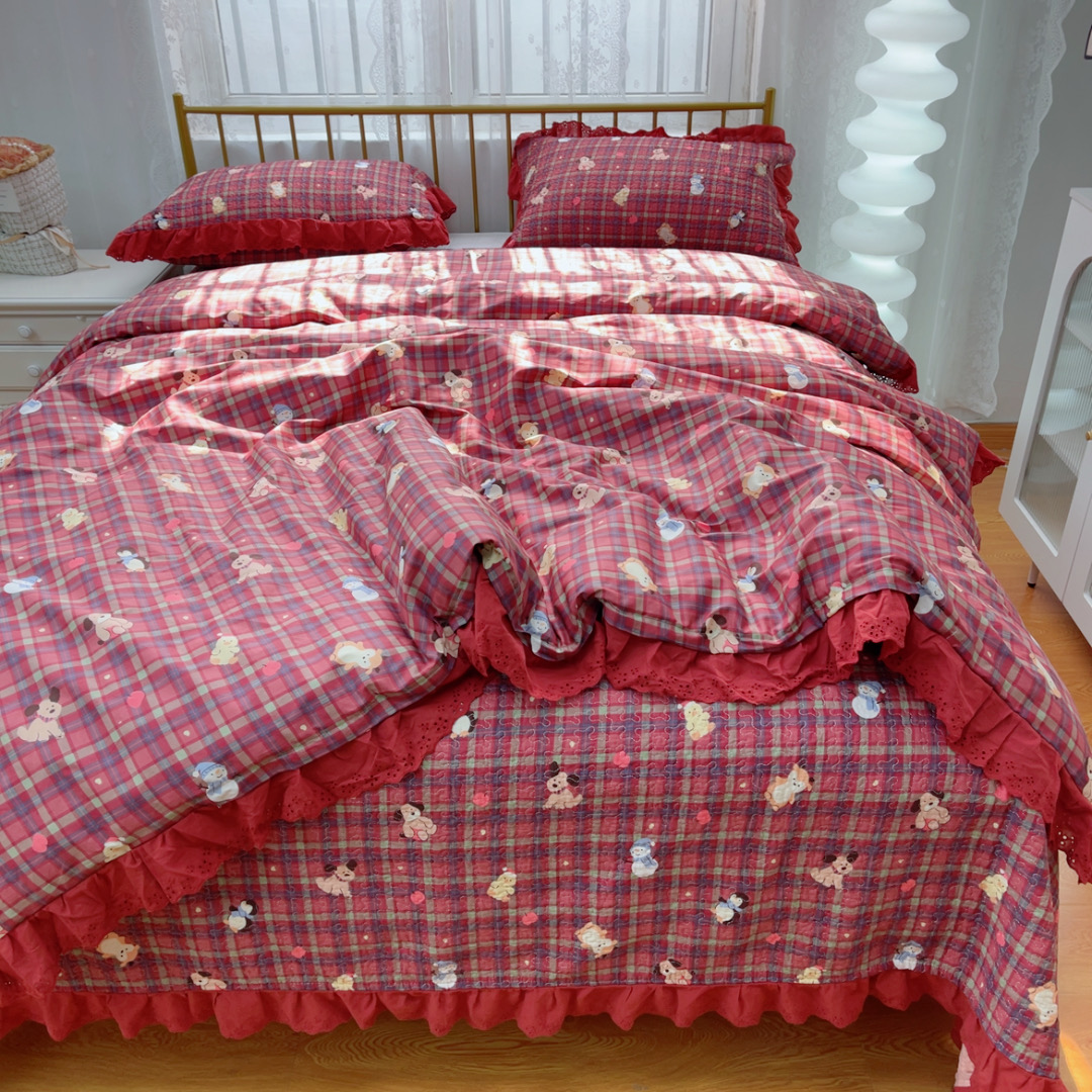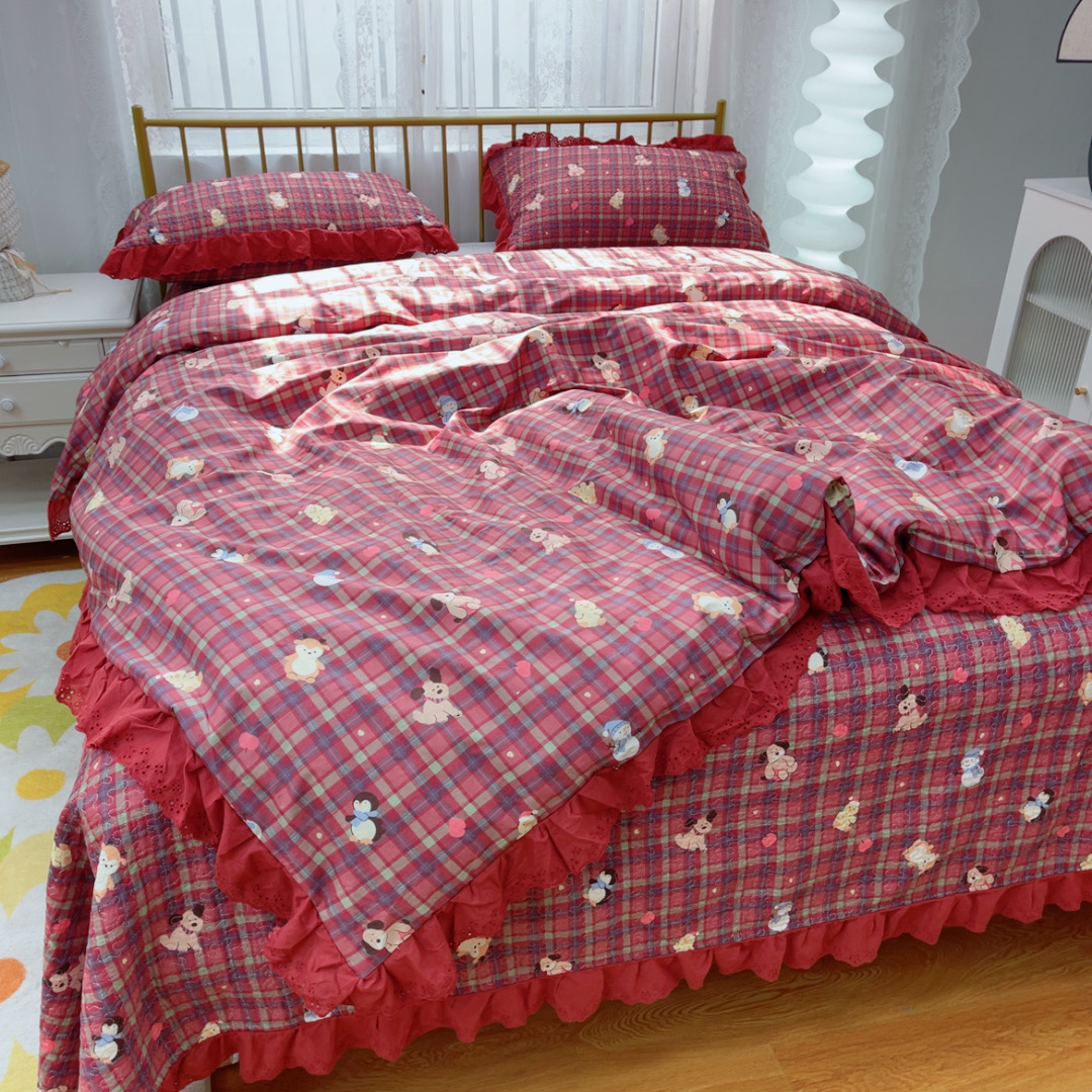 暖居 2025春夏款高温砂洗棉花床盖三件套被套四件套同款纯棉夏被空调被四季 新年红