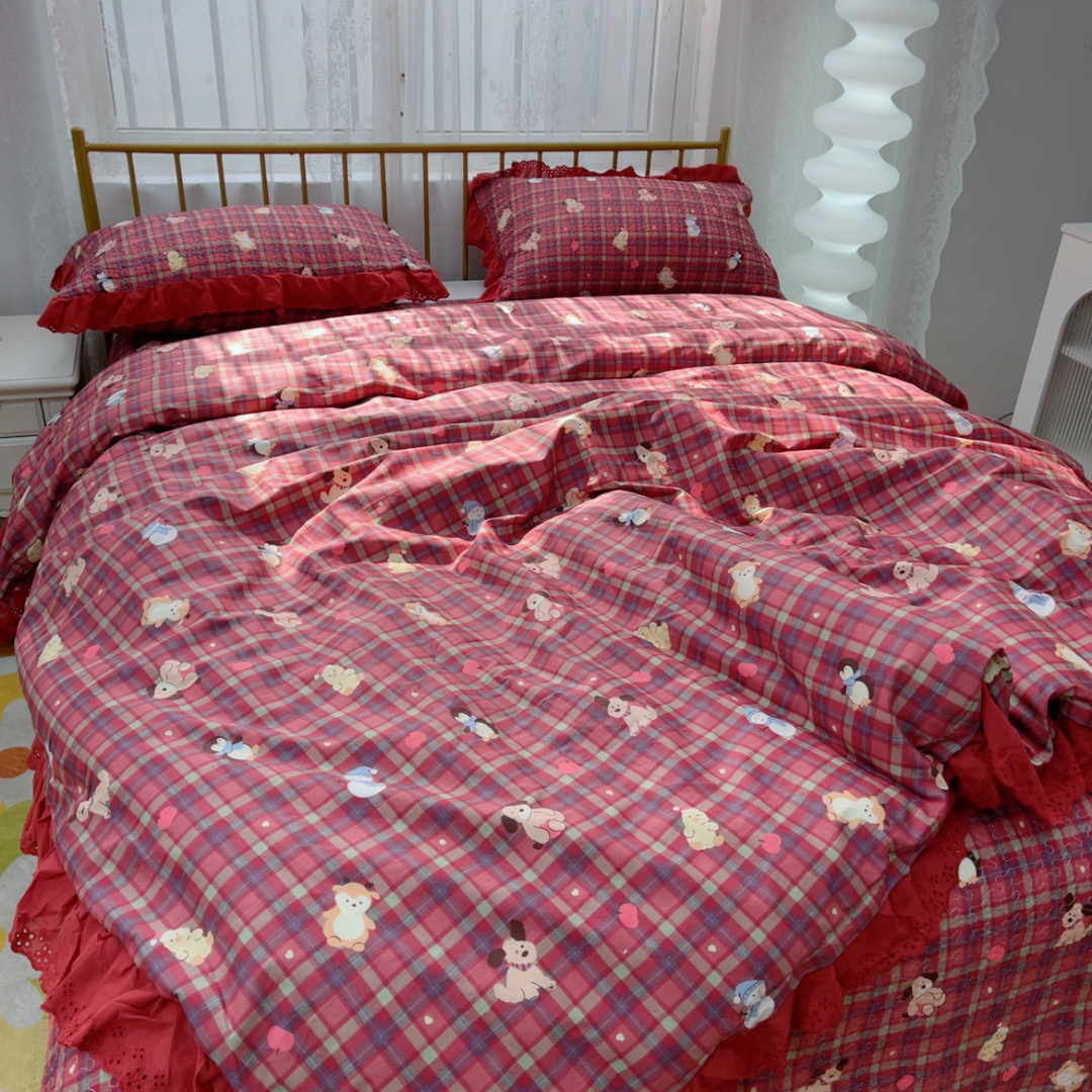 (总)暖居 2026年新款全棉色织水洗棉高温砂洗床盖三件套四件套,英式格纹,复古红,可可灰,纽约格红,森林咖,云曲,艾丽莎,丁香紫,格语绿,橘黄,挪威,圣诞格,芸素黄