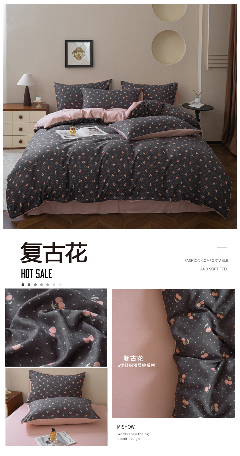 商品名称:斯卡诺家纺 2025新款针织天竺棉水洗棉四件套被套学生宿舍三件套床单款复古花