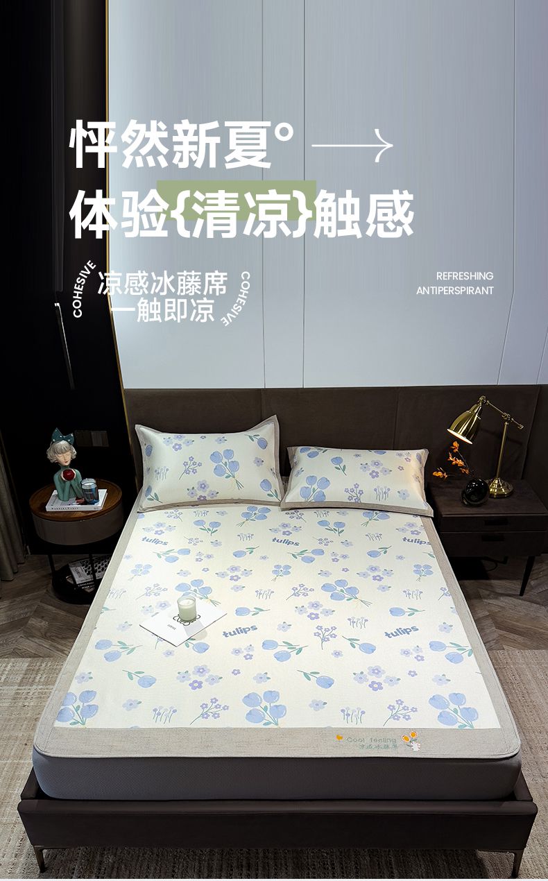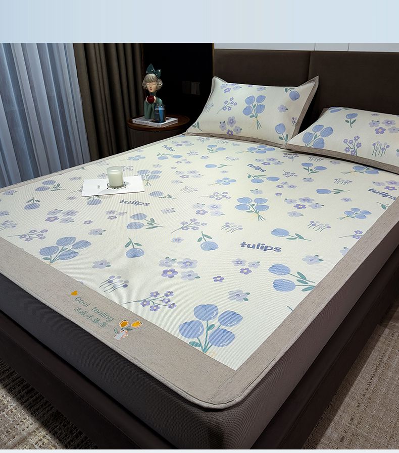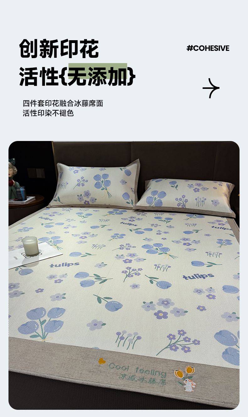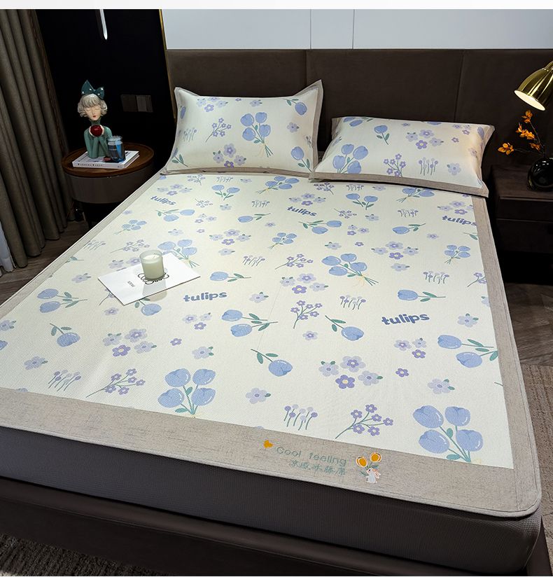 摩妮卡 2025新款数码印花凉席冰藤席床笠款三件套 香丽儿