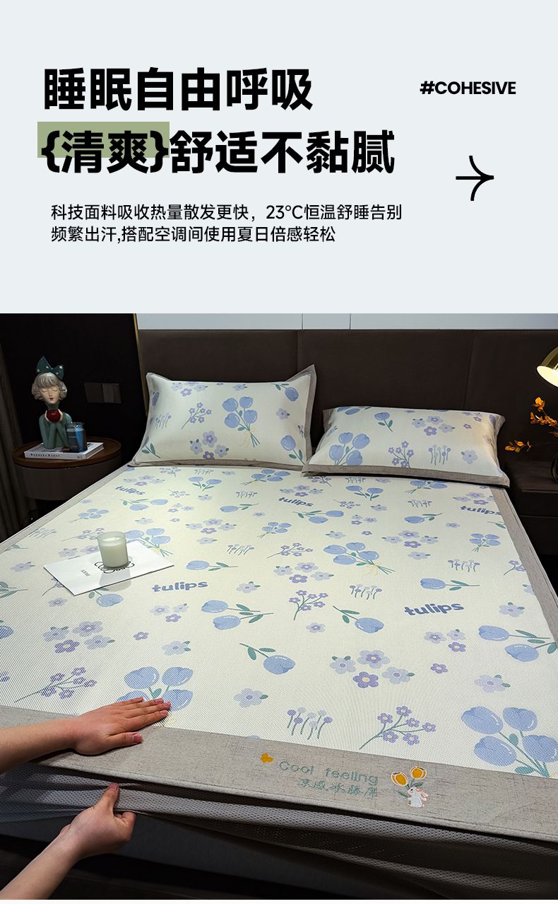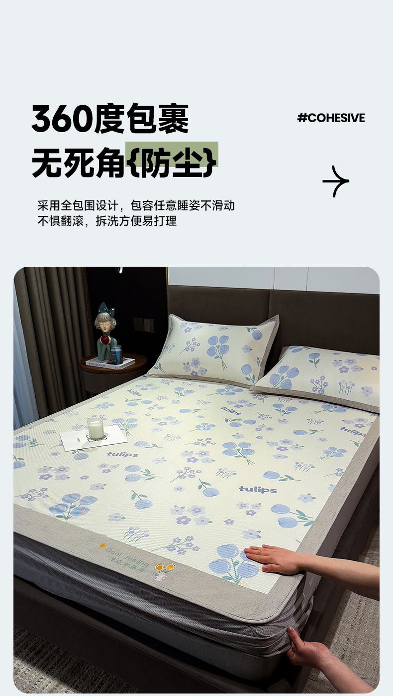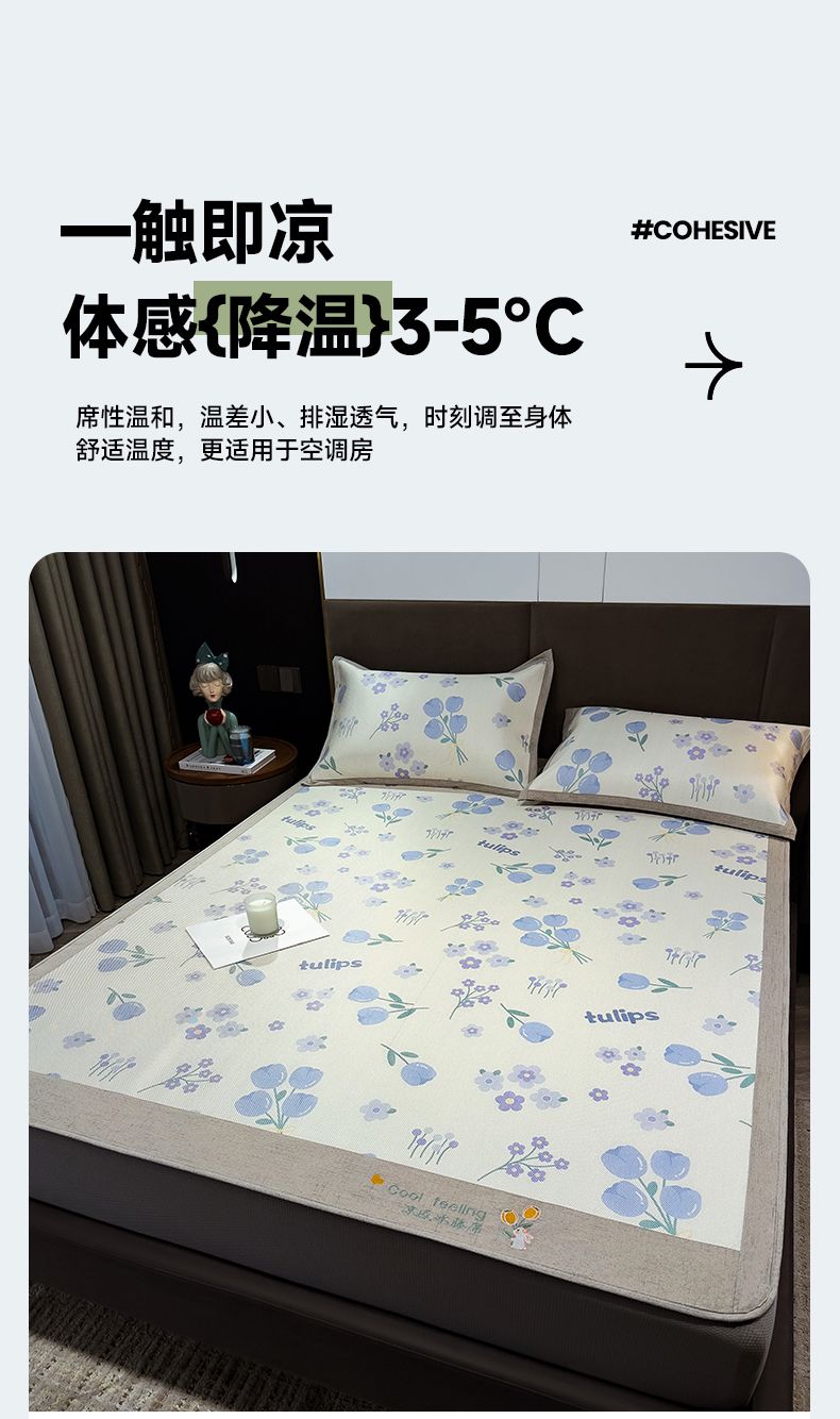 摩妮卡 2025新款数码印花凉席冰藤席床笠款三件套 香丽儿