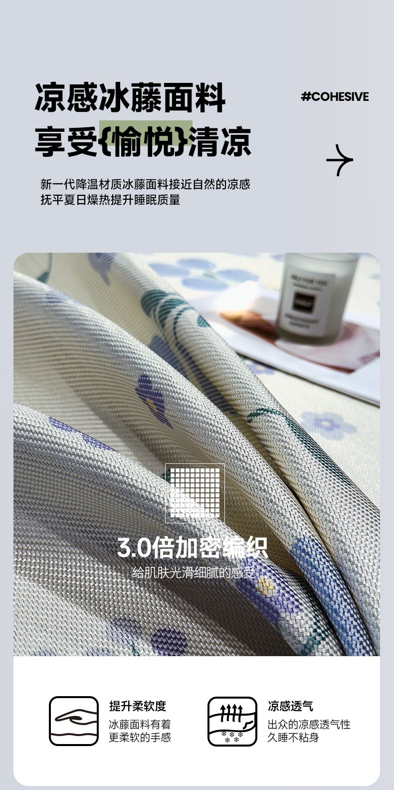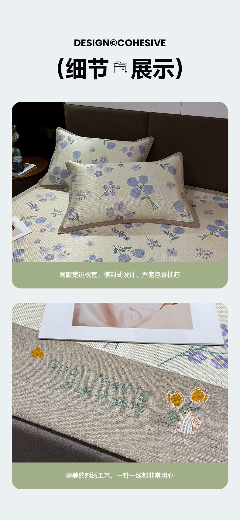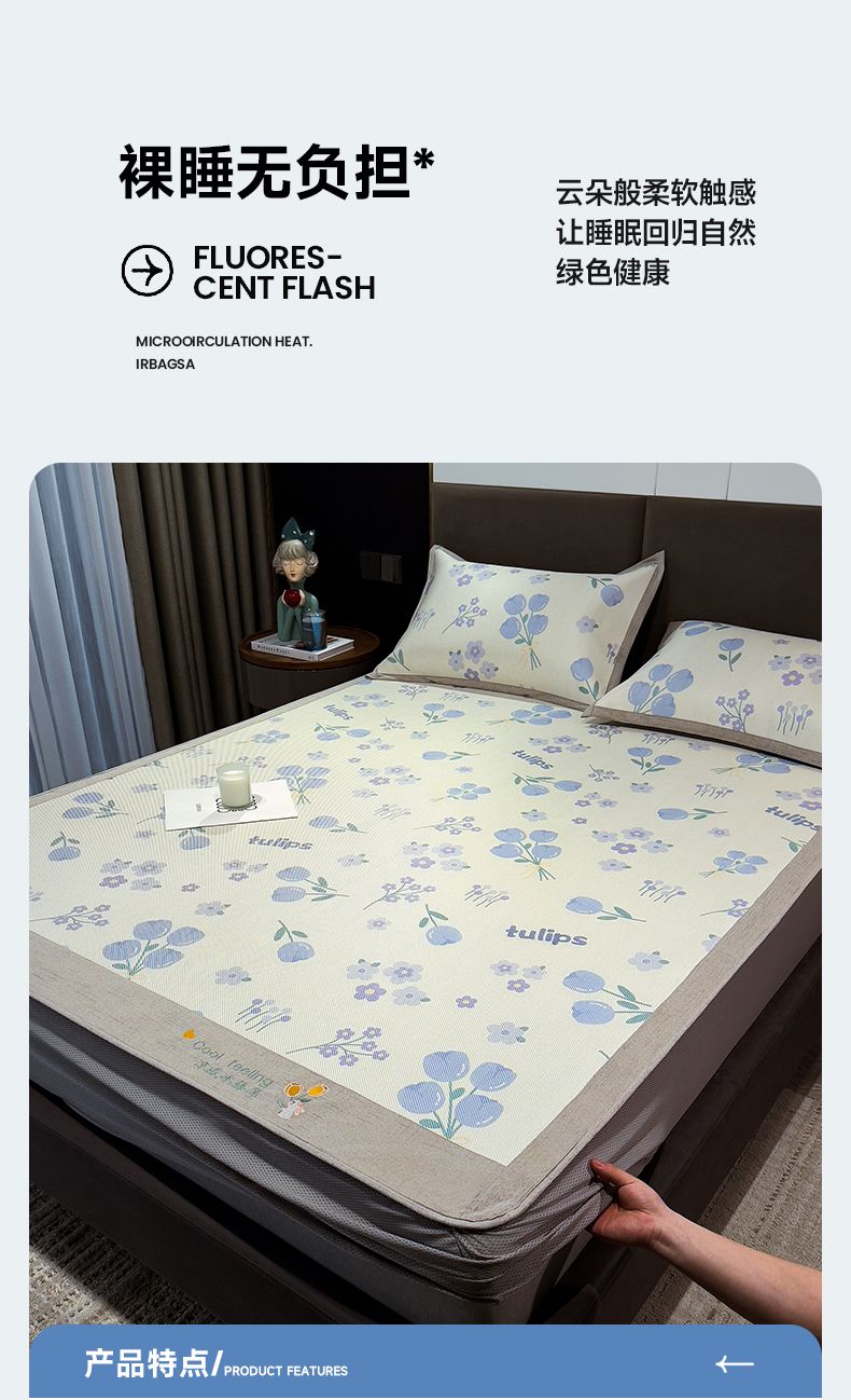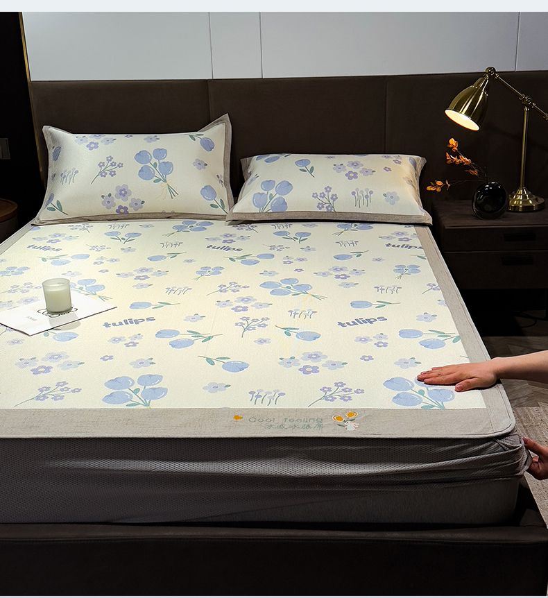 商品名称:摩妮卡 2025新款数码印花凉席冰藤席床笠款三件套 香丽儿